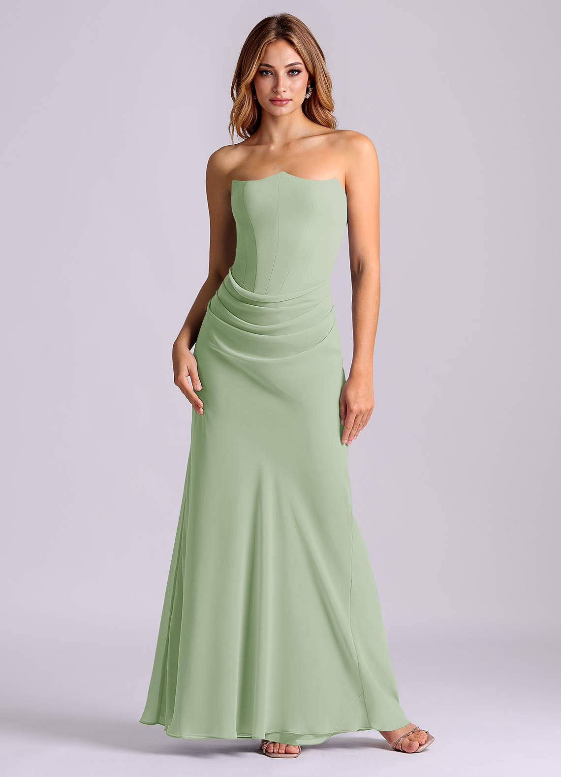 Dusty Sage Mermaid Strapless Chiffon Dress
