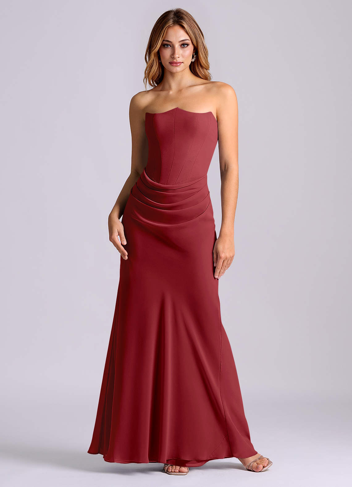 Pomegranate Mermaid Strapless Chiffon Dress