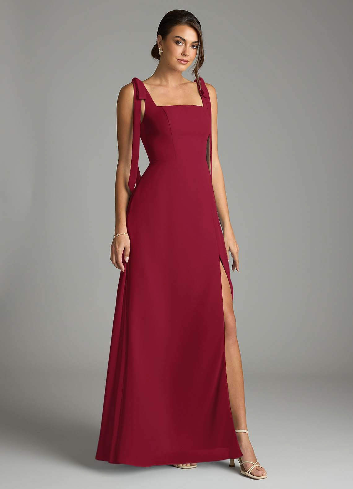 Burgundy A-Line with Pockets Chiffon Convertible Dress