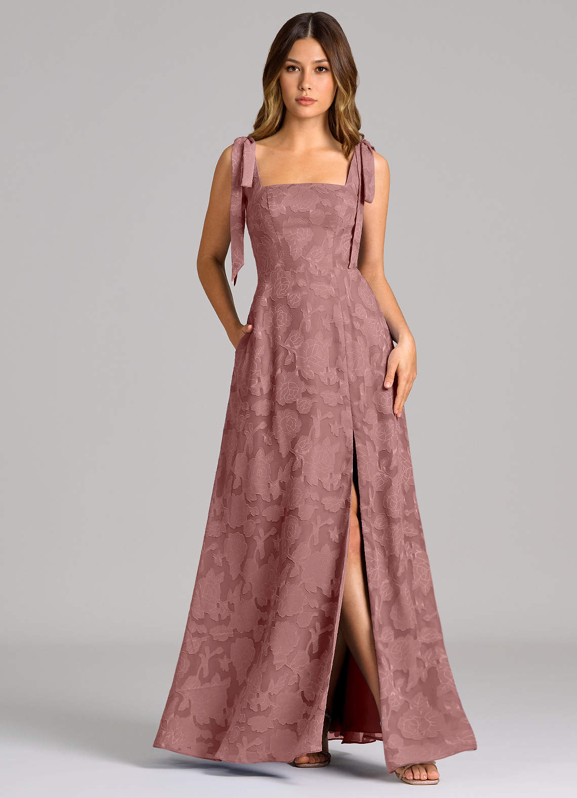 Dusty Rose A-Line with Pockets Floral Burnout Dress