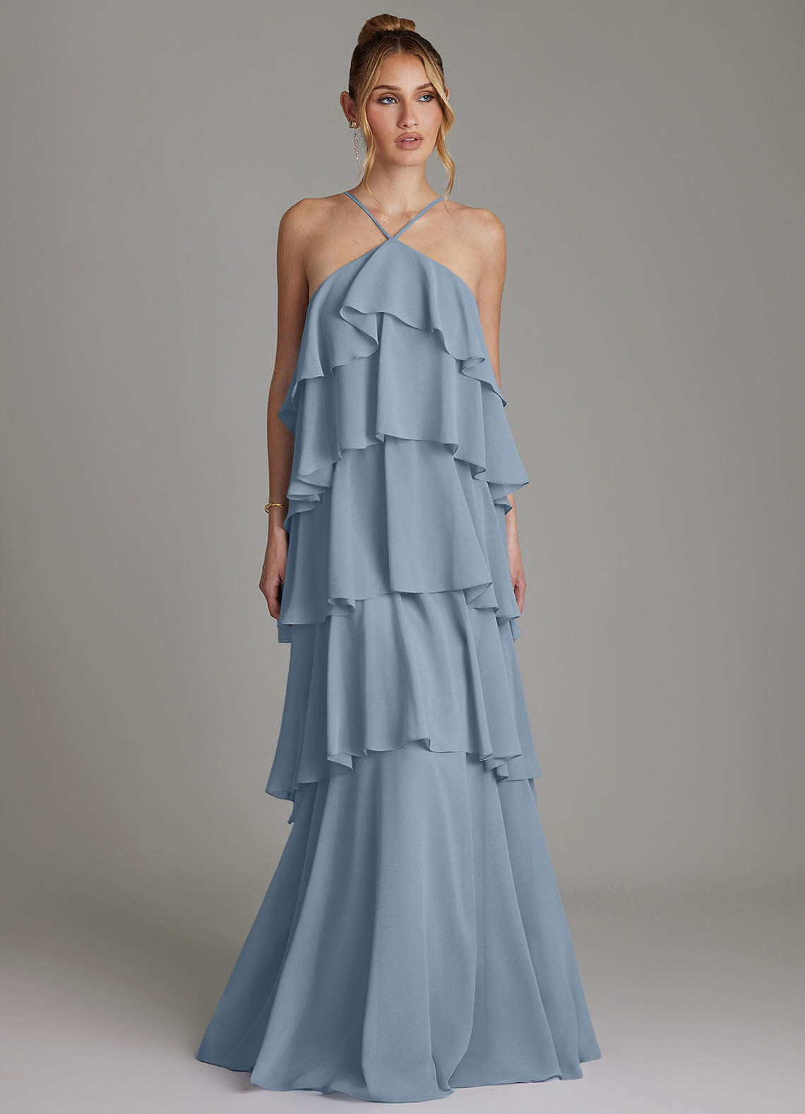 Dusty Blue A-Line Ruched Chiffon Dress