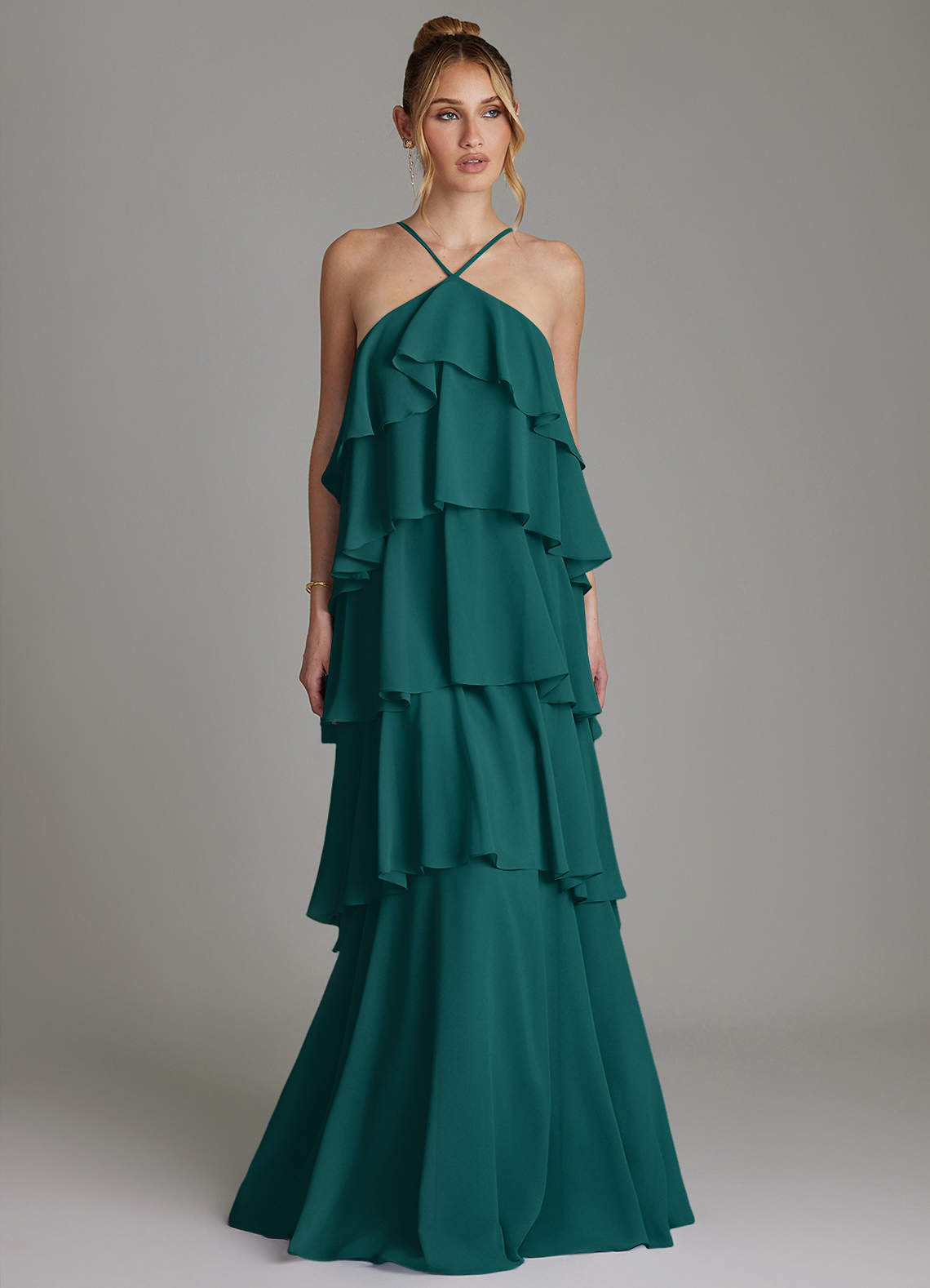 Peacock A-Line Ruched Chiffon Dress