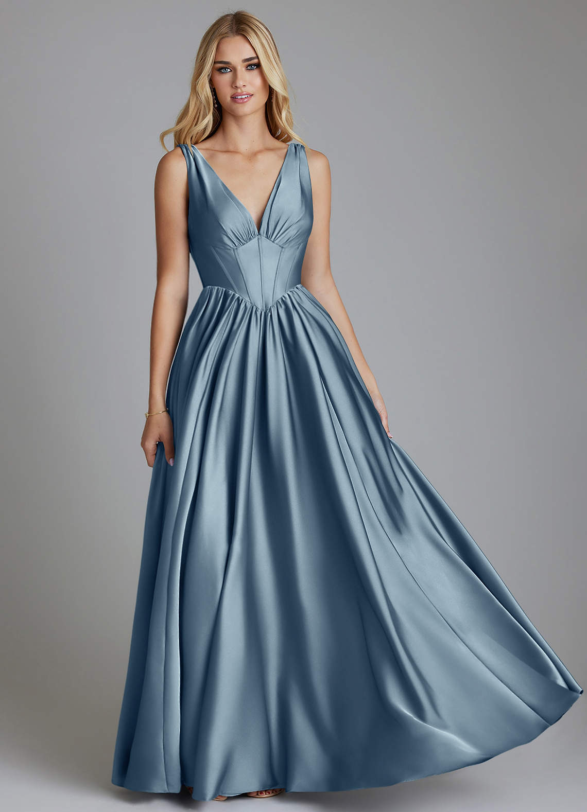 Dusty Blue A-Line Corset Stretch Satin Dress