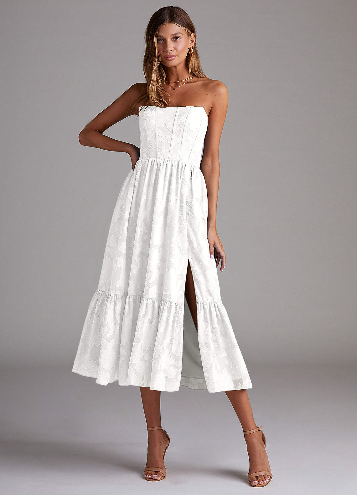 White A-Line Strapless Floral Burnout Convertible Dress