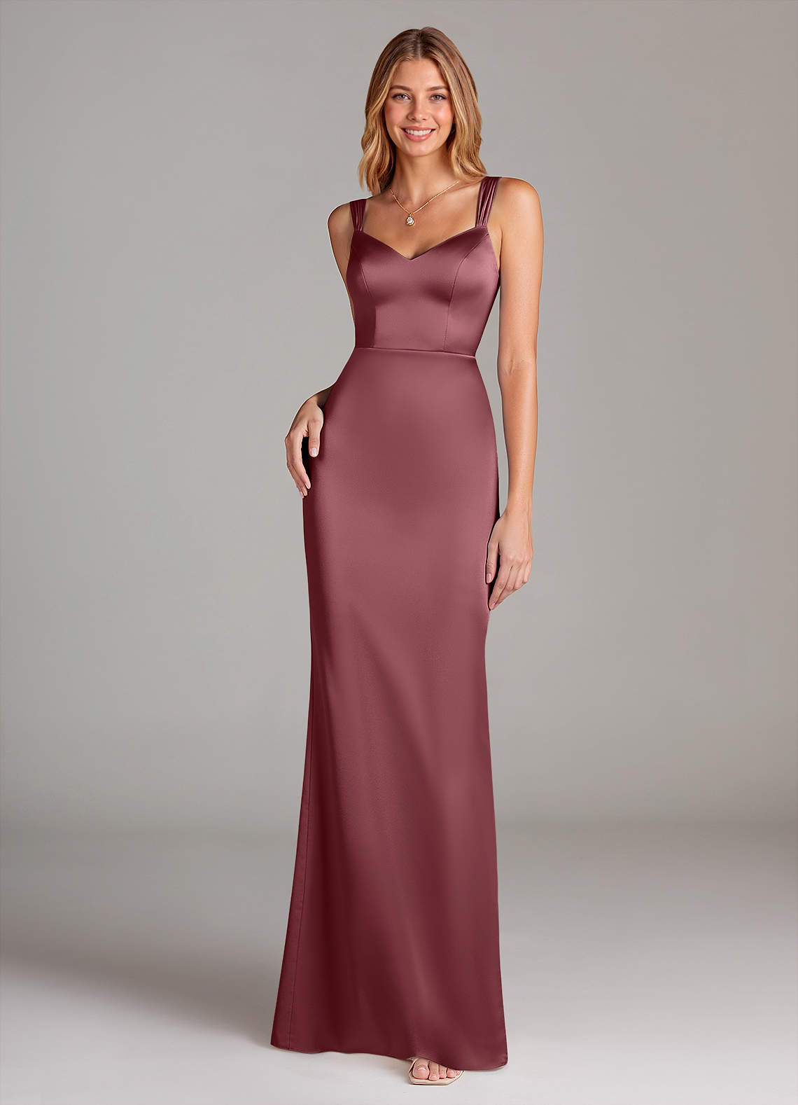 Desert Rose Sheath Pleated Stretch Satin Dress