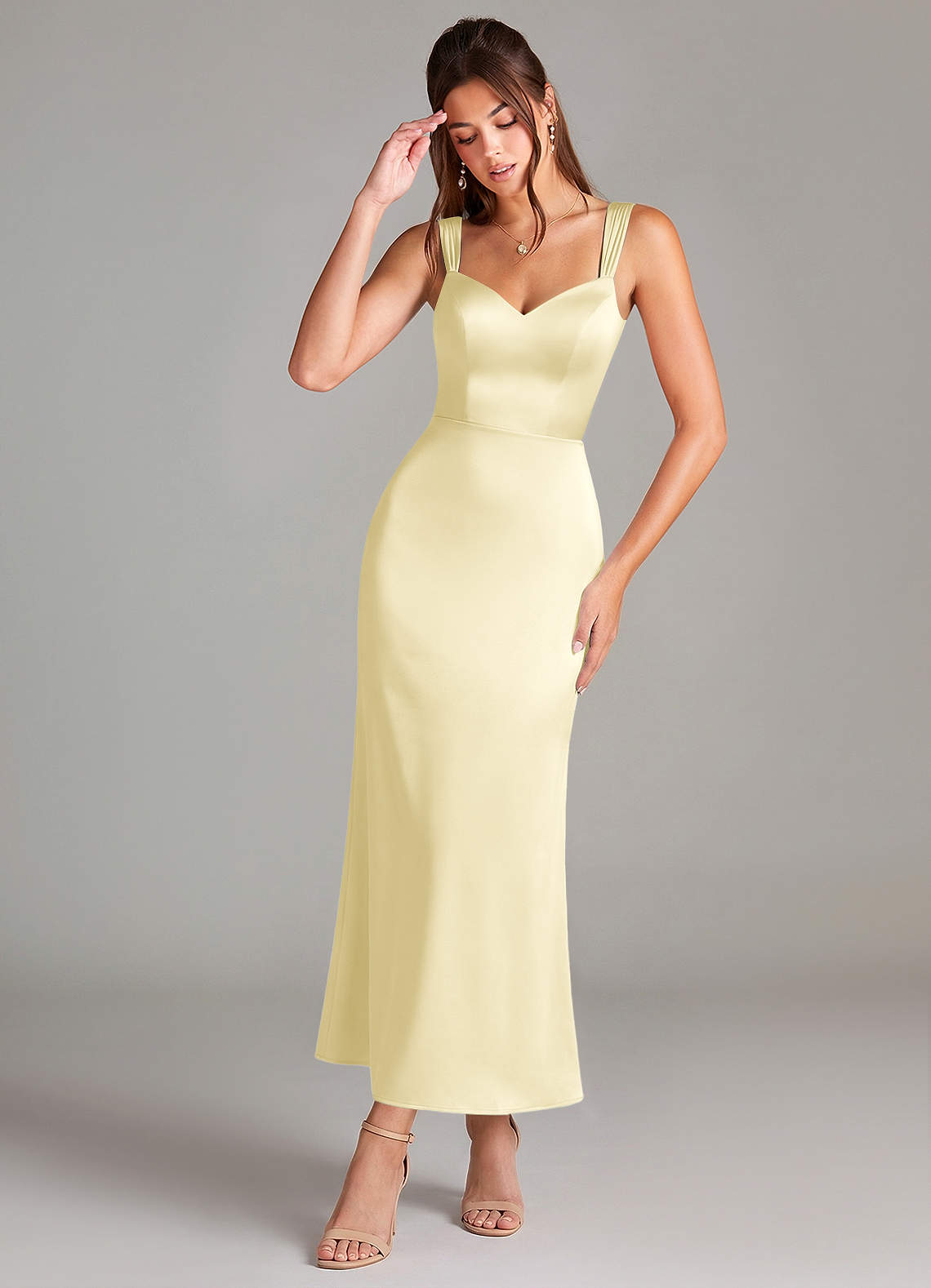 Lemon Sorbet Sheath Pleated Stretch Satin Dress