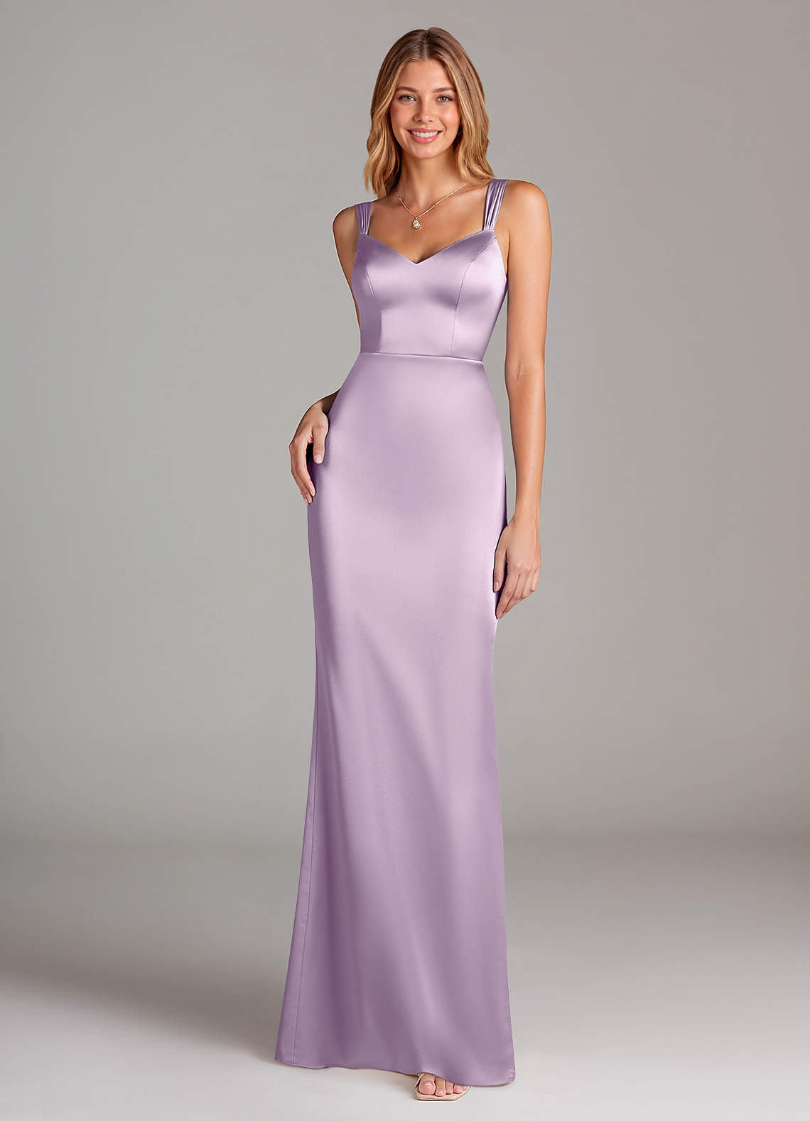 Frosted Lilac Sheath Pleated Stretch Satin Dress