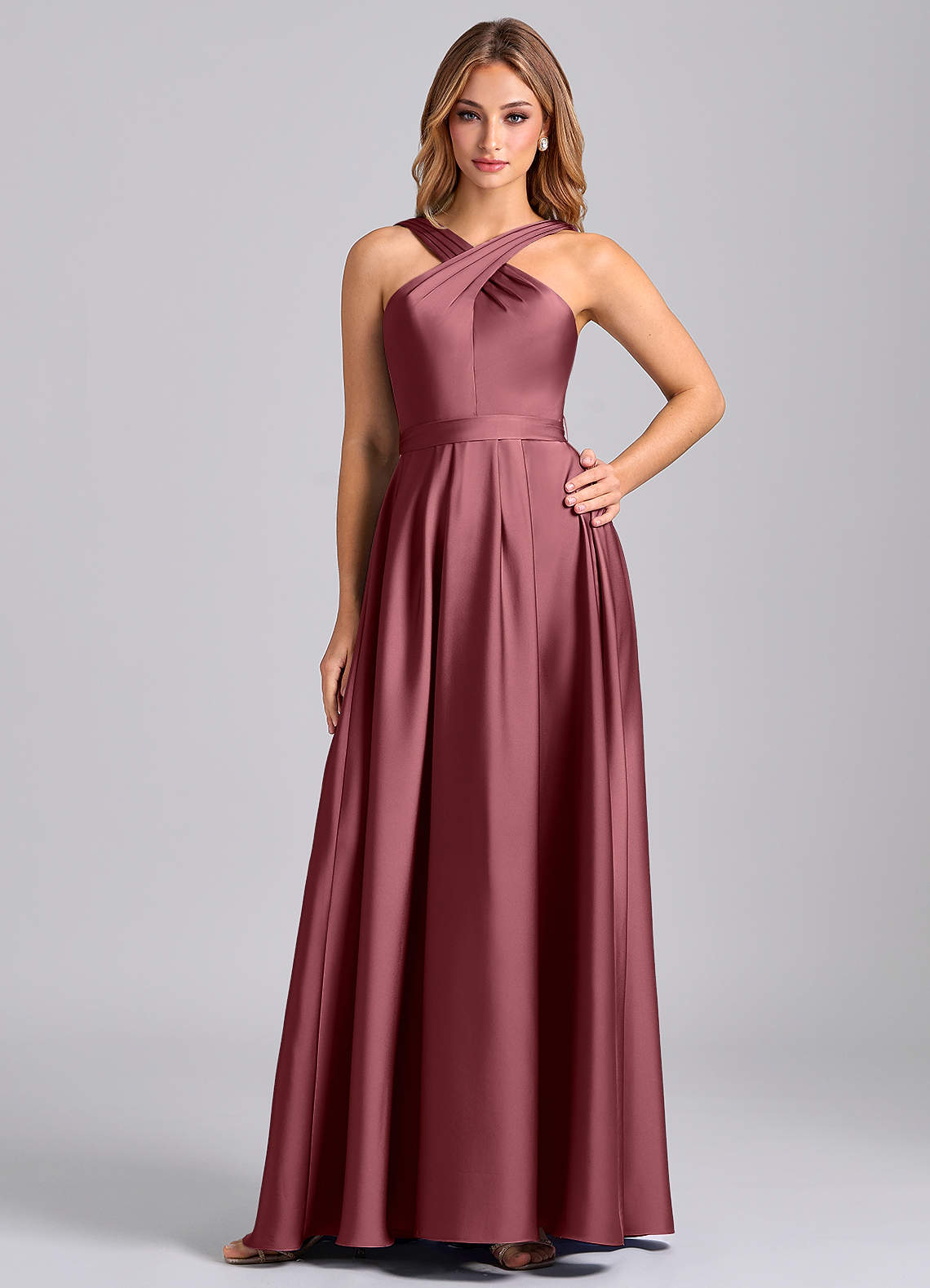 Desert Rose A-Line Pleated Stretch Satin Dress