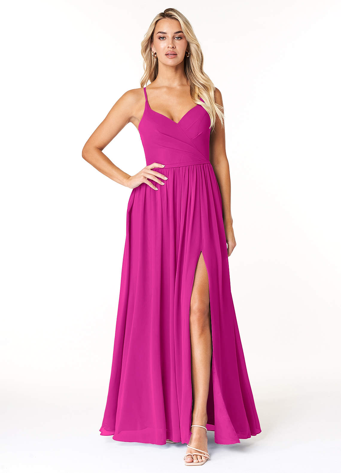Fuchsia A-Line V-Neck Pleated Chiffon Dress