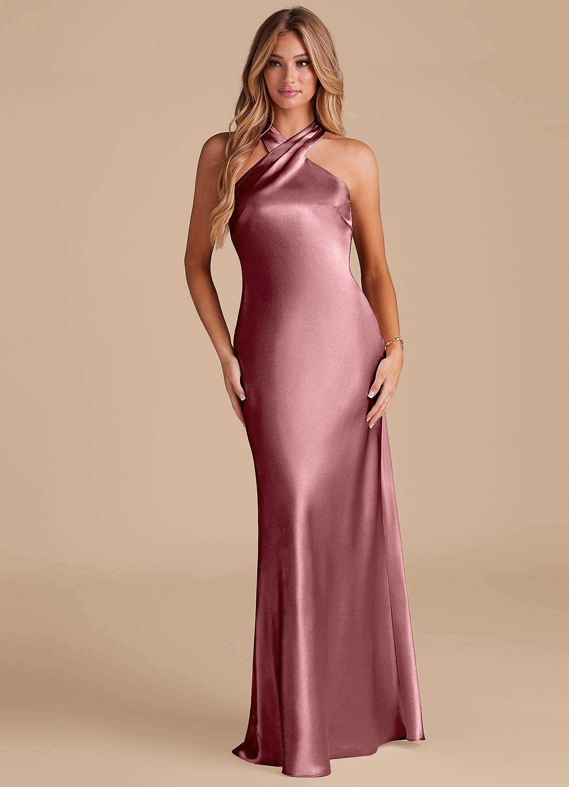 Vintage Mauve Mermaid Bow Metallic Satin Dress