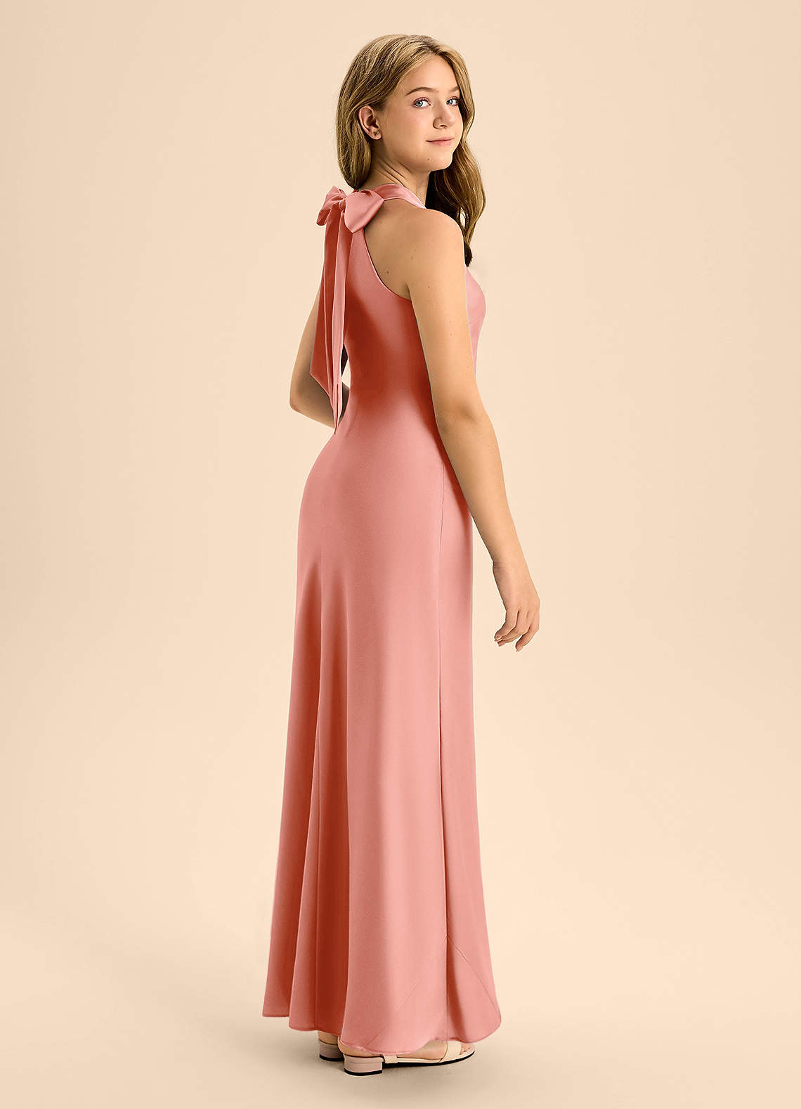 Coral A-Line Pleated Stretch Satin Dress