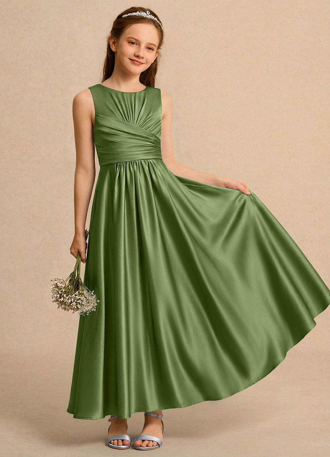 Juniper A-Line Pleated Stretch Satin Dress