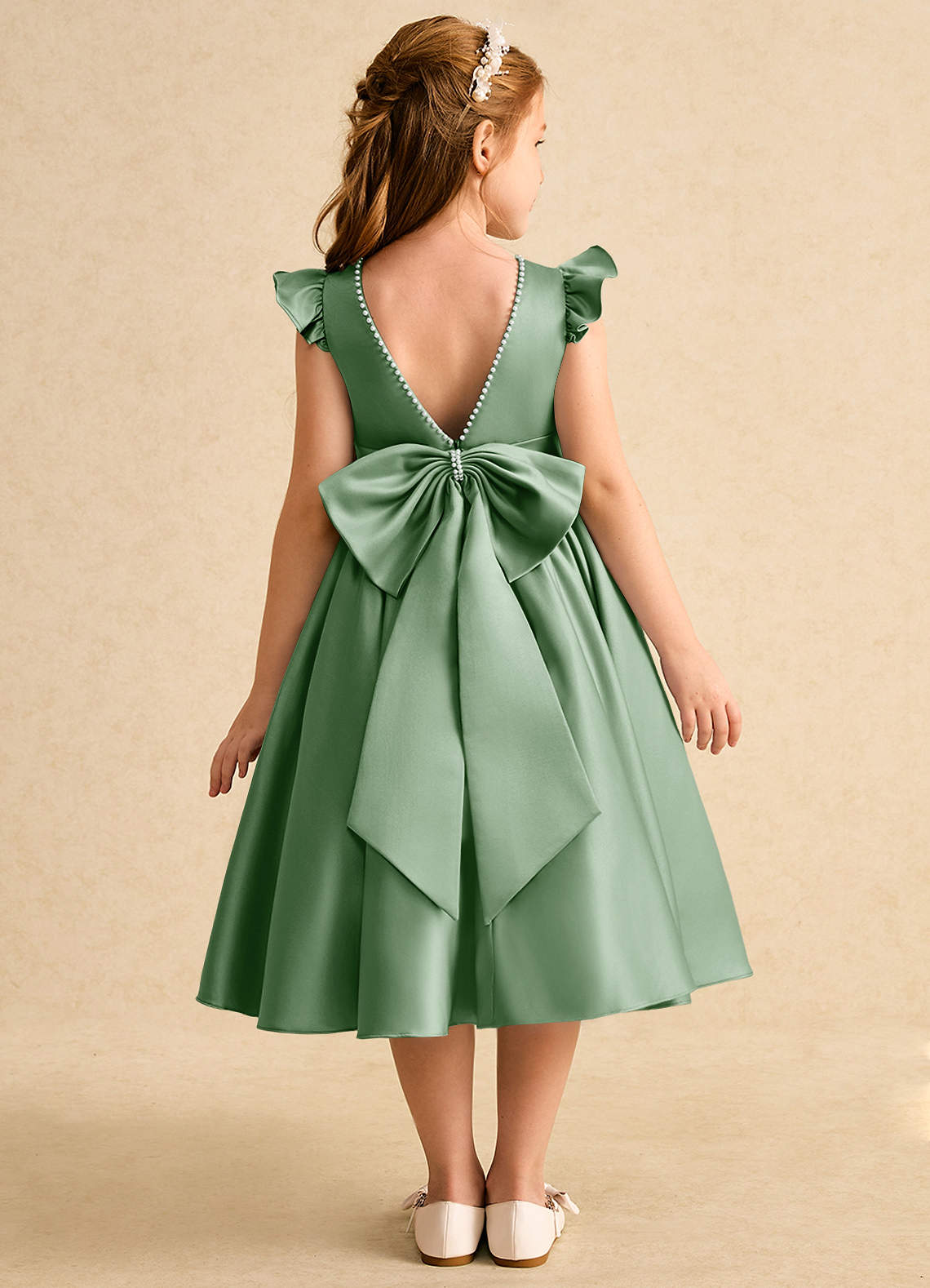 Matcha A-Line Bow Matte Satin Dress