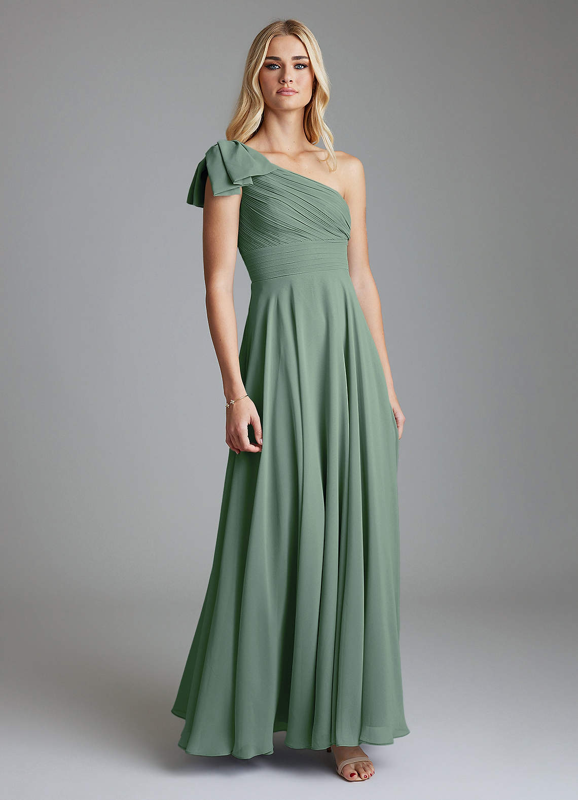Eucalyptus A-Line One Shoulder Chiffon Dress