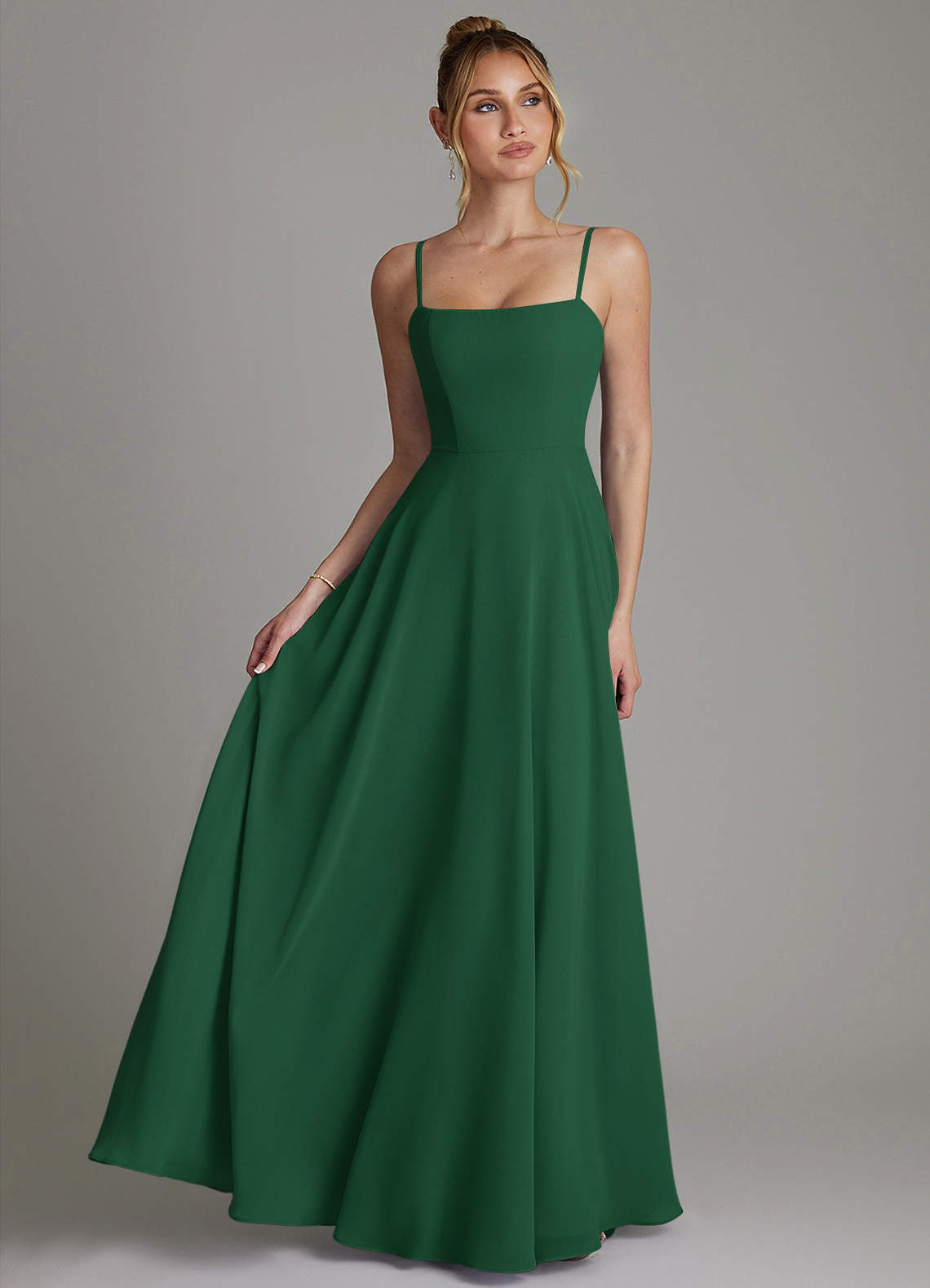 Dark Green A-Line Pleated Chiffon Dress