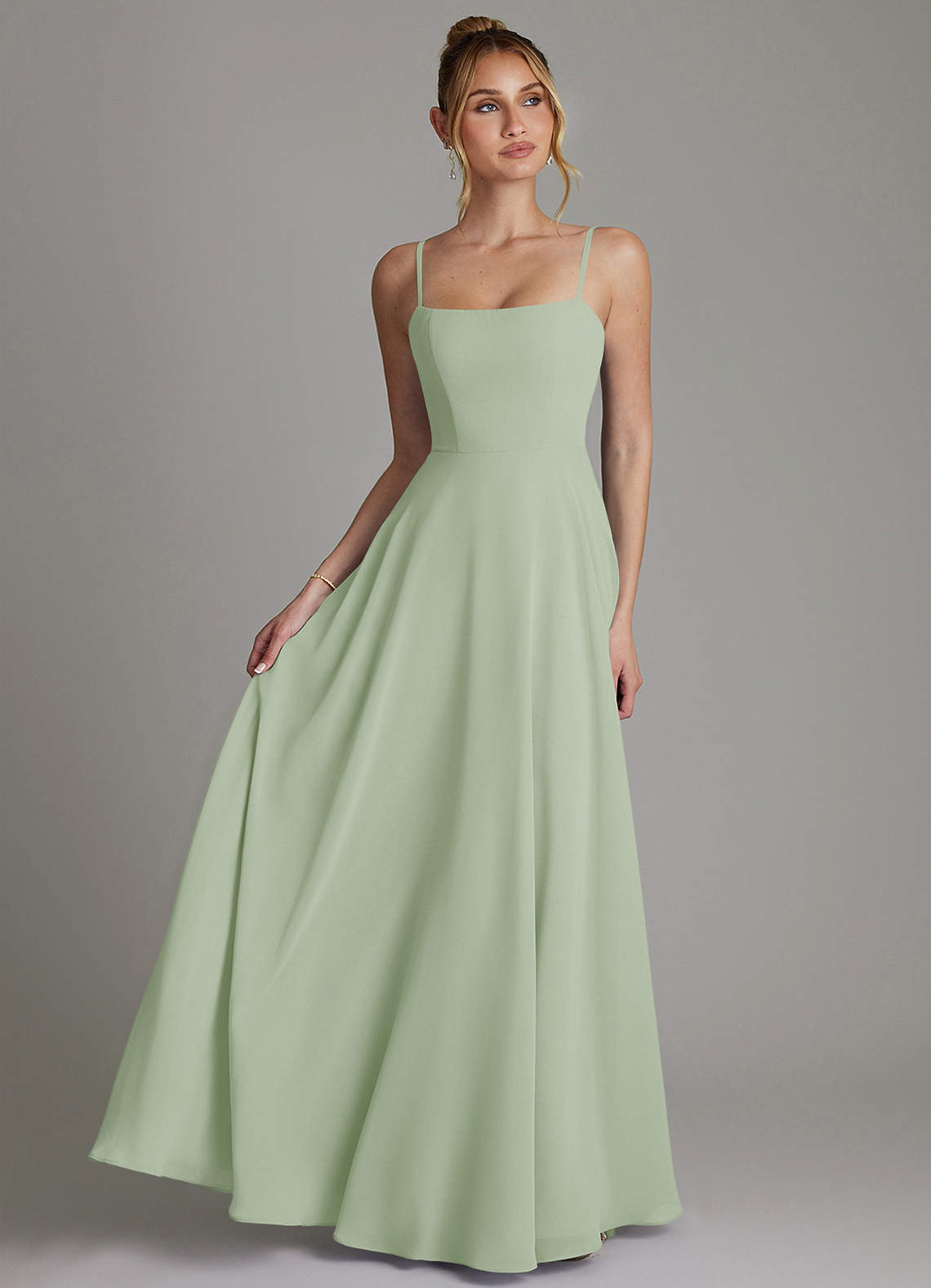 Dusty Sage A-Line Pleated Chiffon Dress