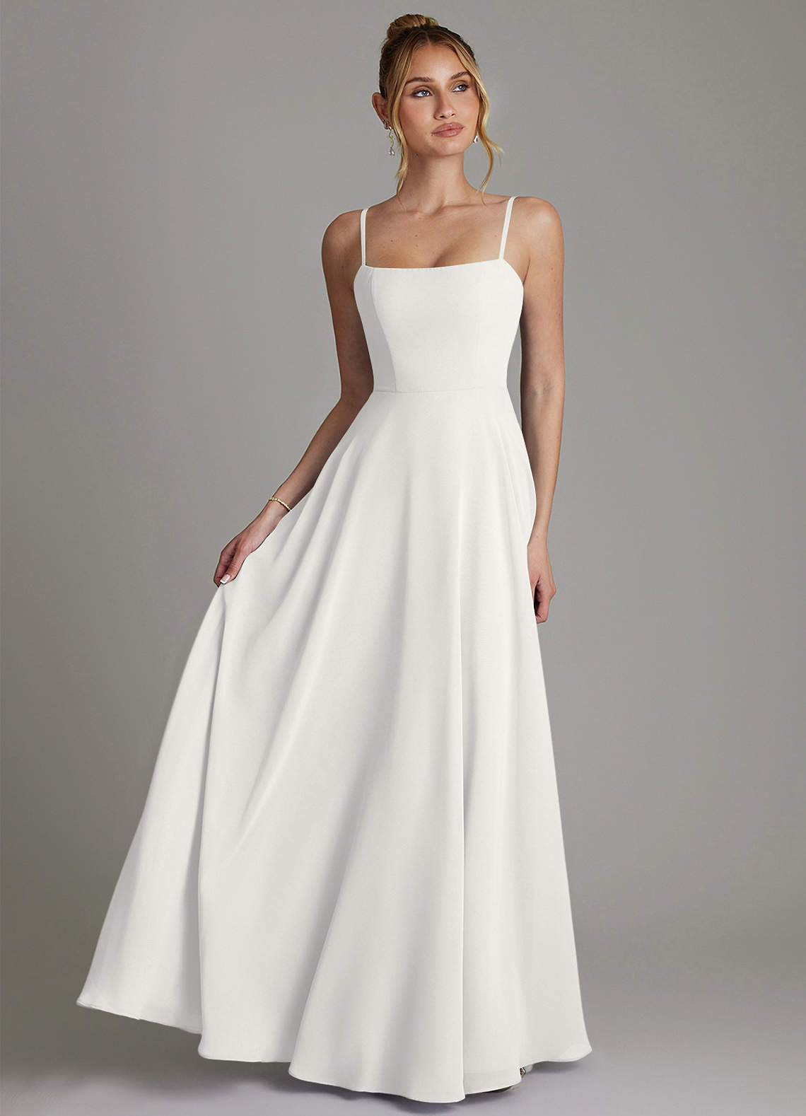 White A-Line Pleated Chiffon Dress