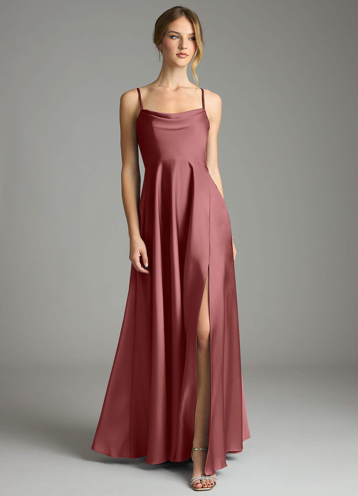 Amethyst A-Line Pleated Stretch Satin Dress