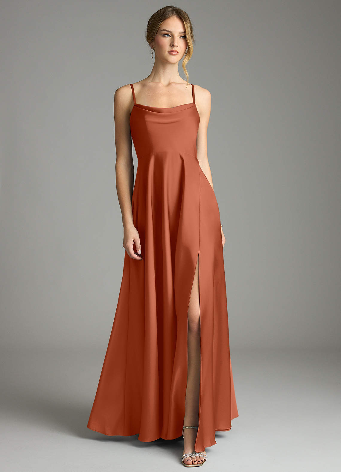 Cedar Rose A-Line Pleated Stretch Satin Dress