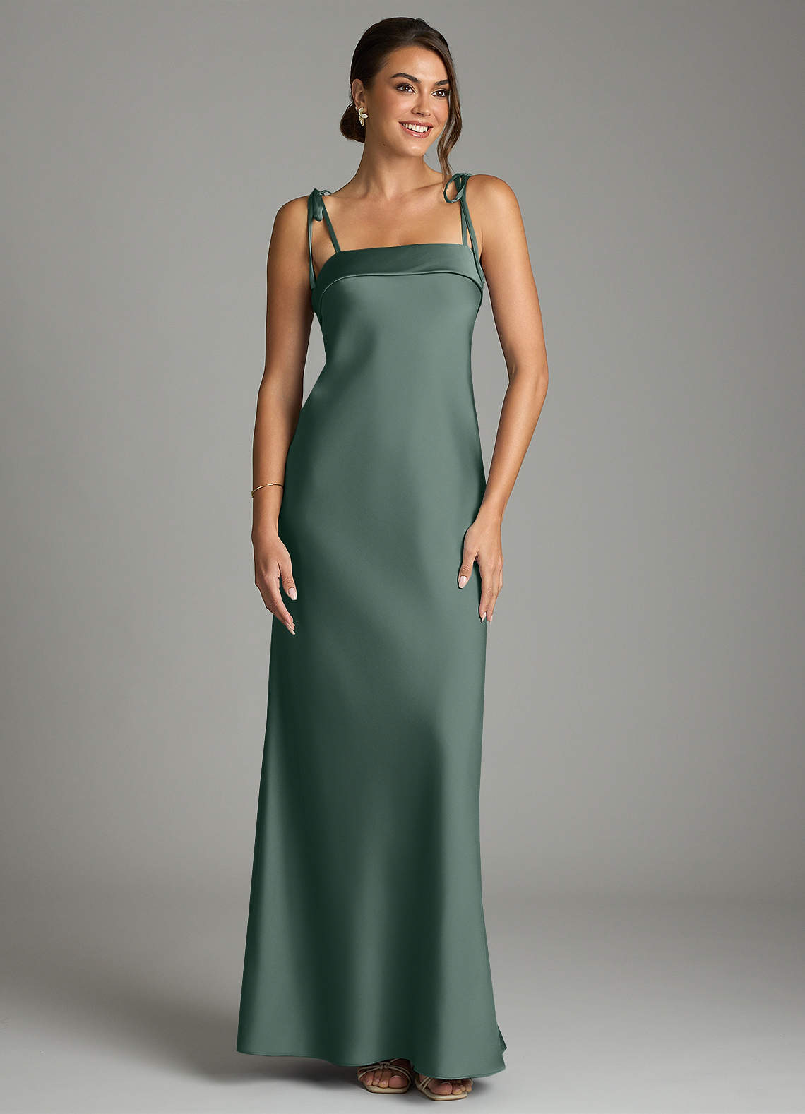 Sea Moss Sheath Bow Stretch Satin Dress