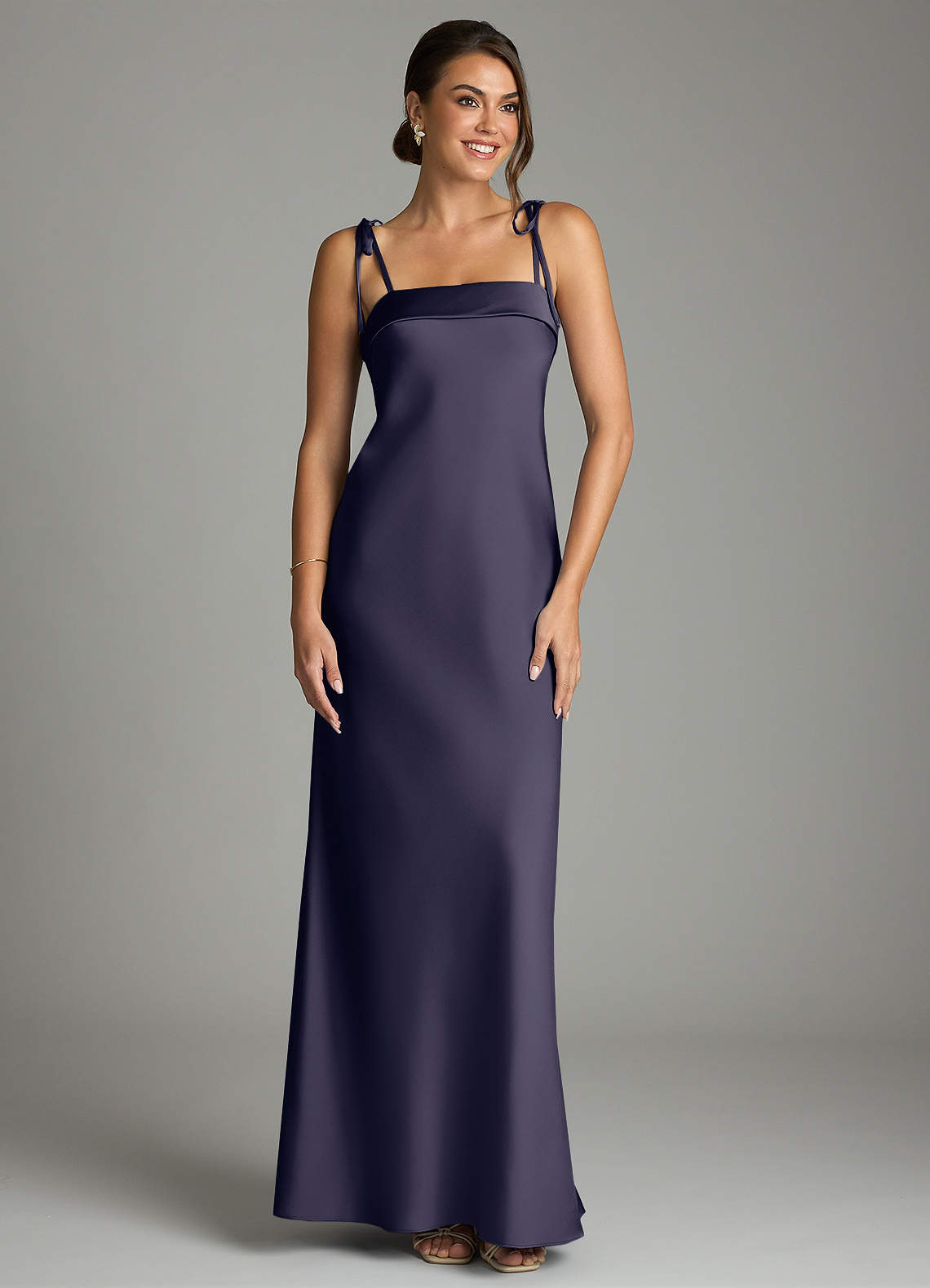 Stormy Sheath Bow Stretch Satin Dress