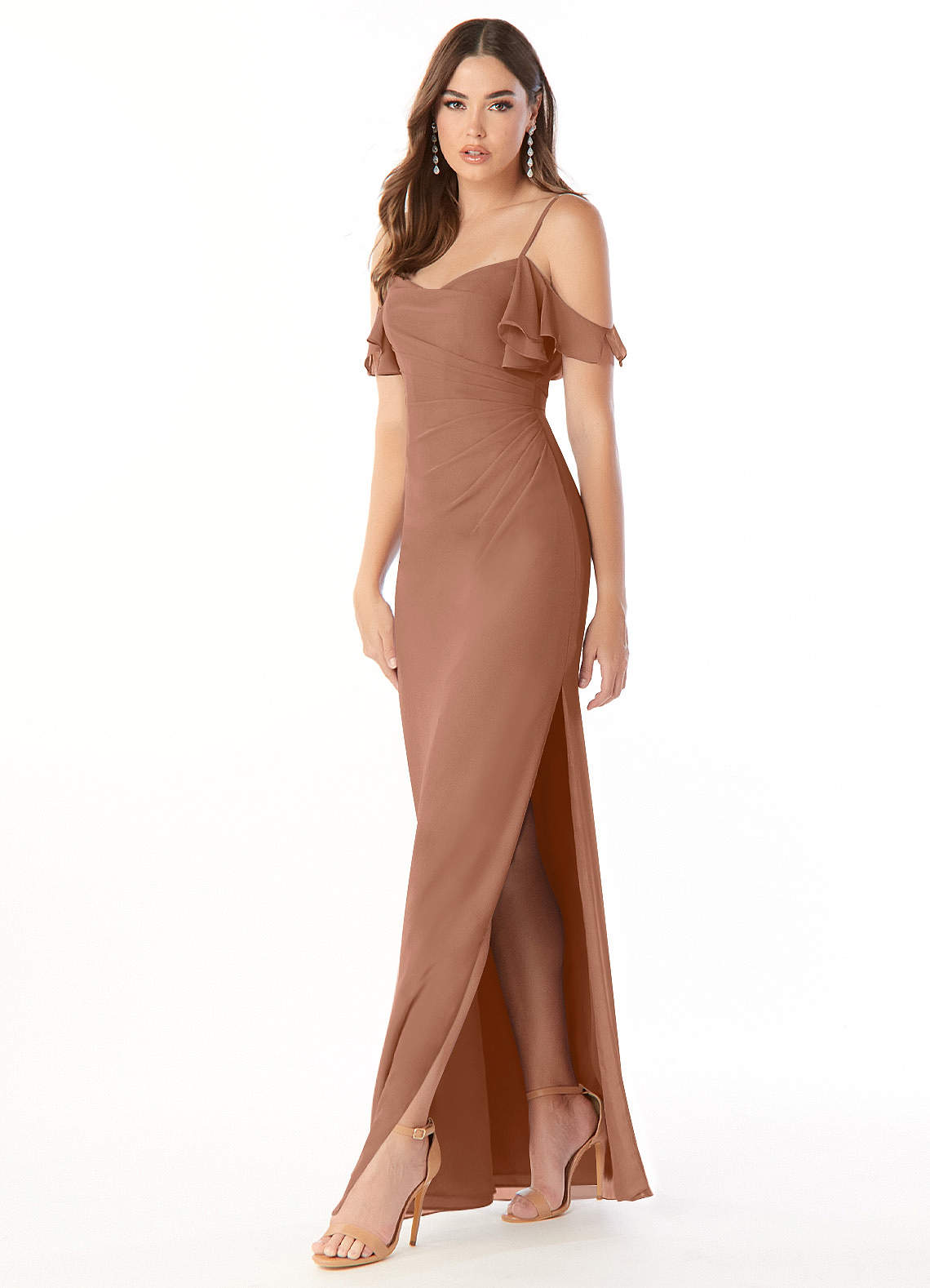 Bronzer Sheath Off the Shoulder Chiffon Dress