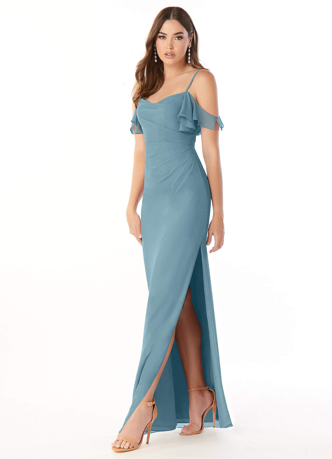 Moody Blue Sheath Off the Shoulder Chiffon Dress