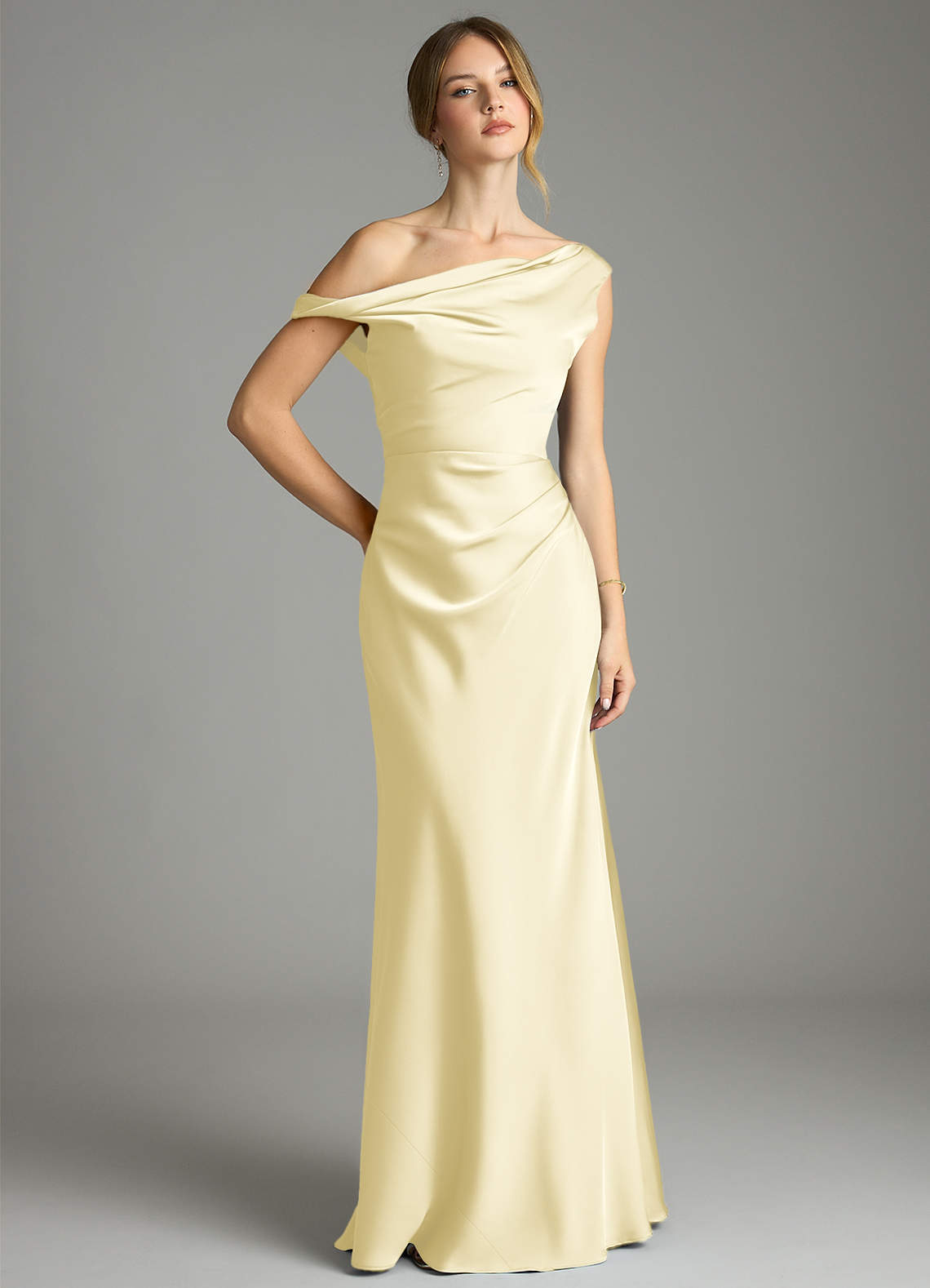 Lemon Sorbet Mermaid Off the Shoulder Stretch Satin Dress