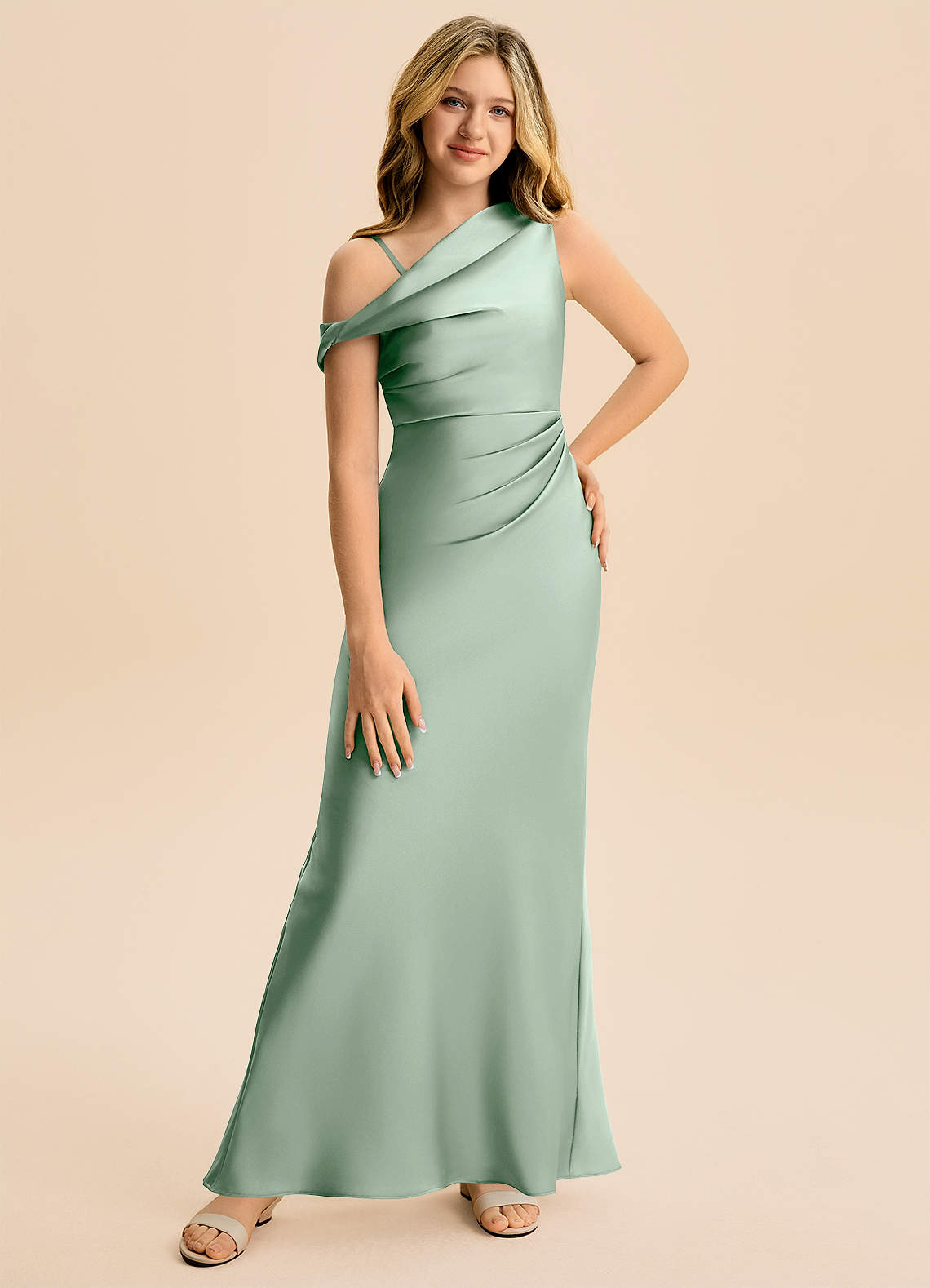 Agave Sheath Off the Shoulder Stretch Satin Dress