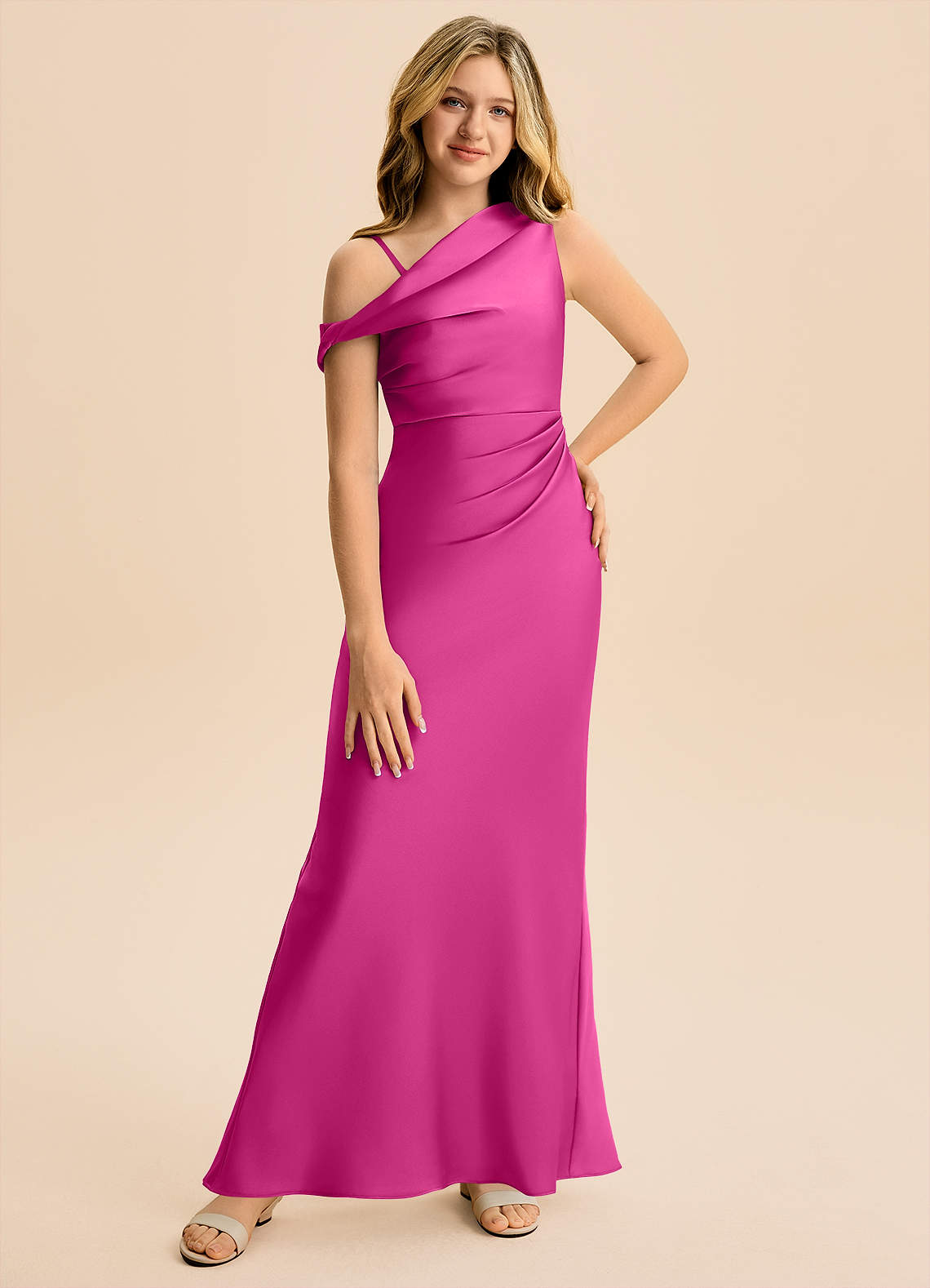 Fuchsia Sheath Off the Shoulder Stretch Satin Dress