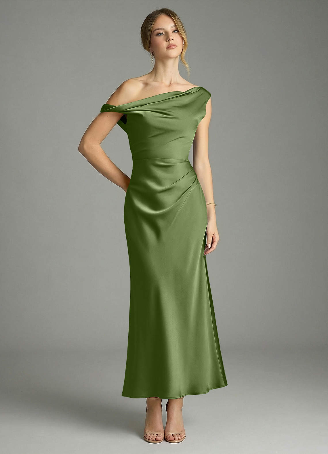 Juniper Mermaid Off the Shoulder Stretch Satin Dress