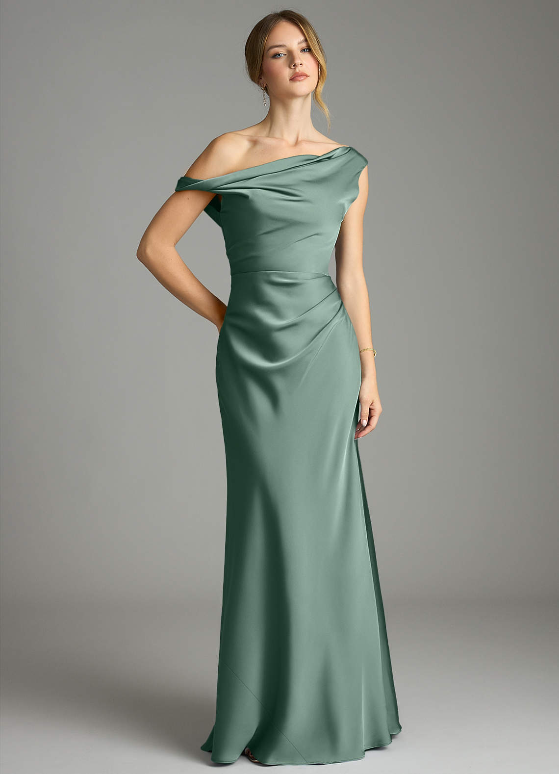 Eucalyptus Mermaid Off the Shoulder Stretch Satin Dress