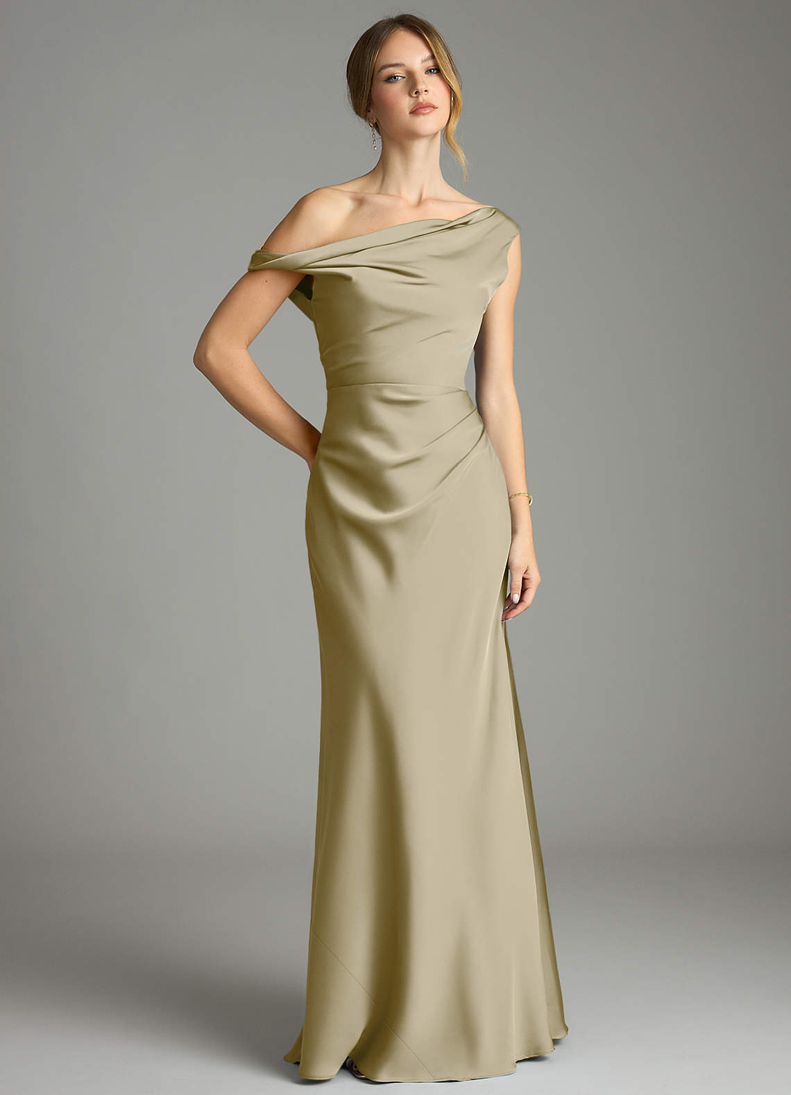 Moss Green Mermaid Off the Shoulder Stretch Satin Dress