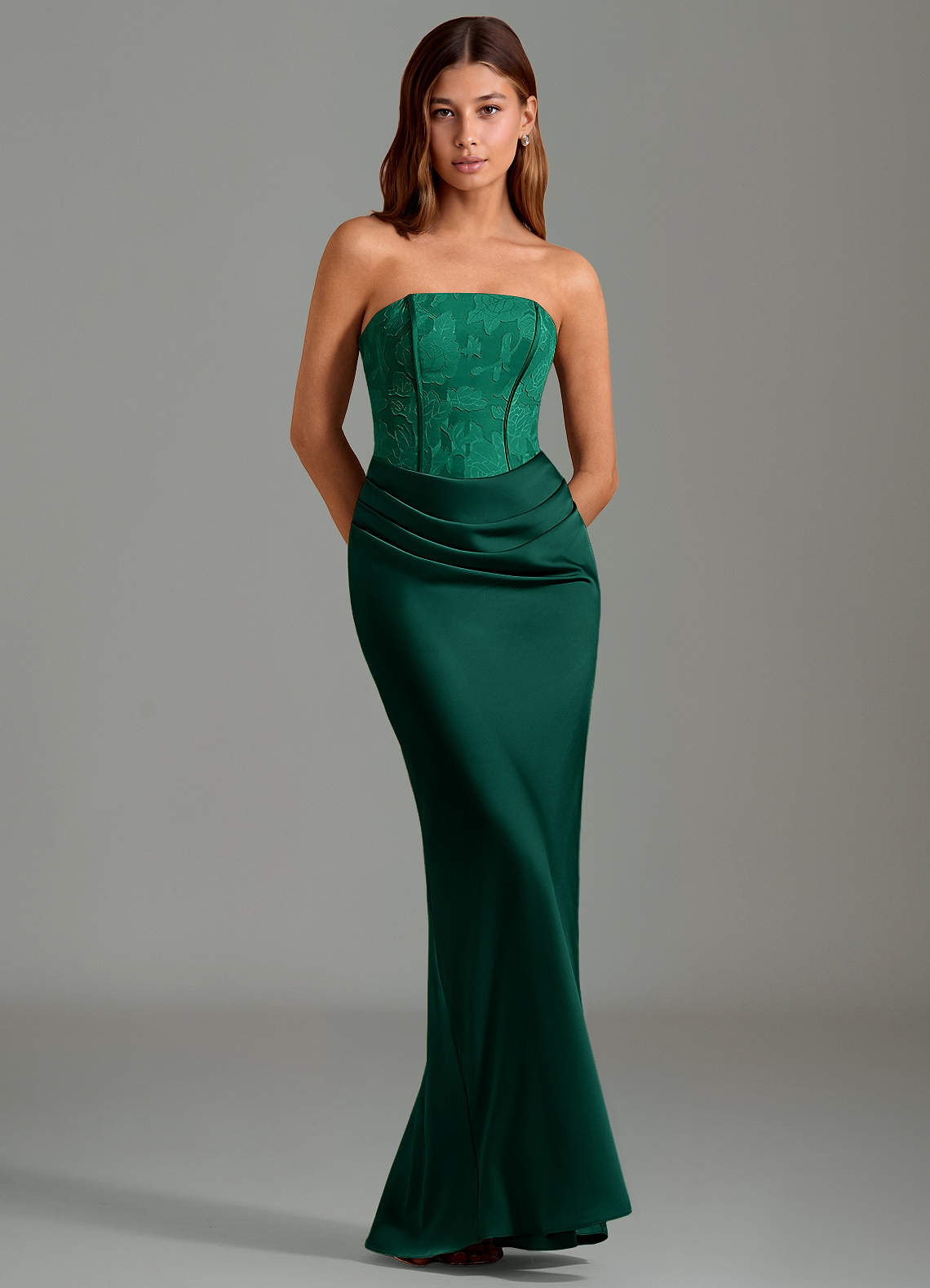 Emerald Mermaid Strapless Stretch Satin Dress