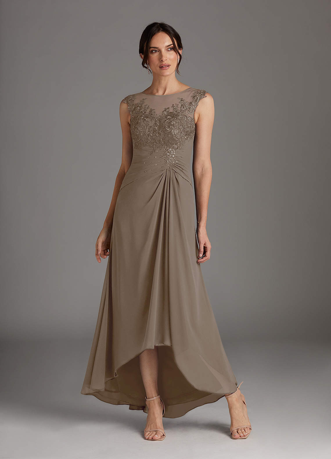 Taupe A-Line Scoop Lace Chiffon Dress