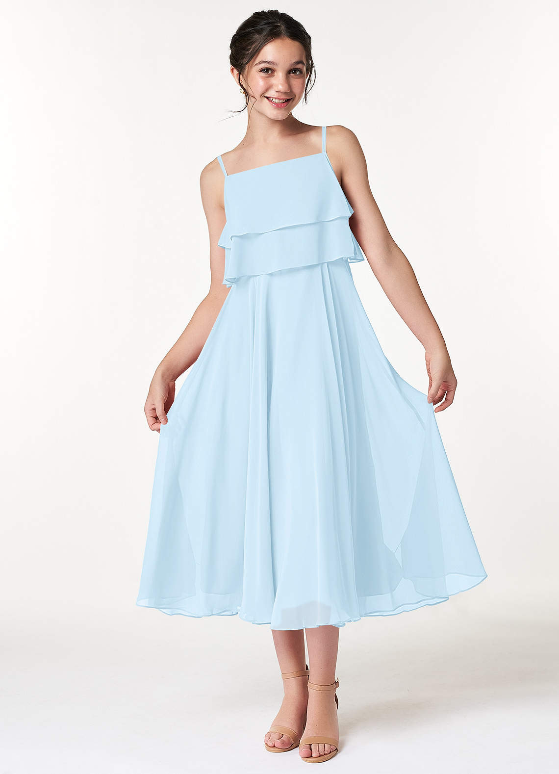 Sky Blue A-Line Pleated Chiffon Dress
