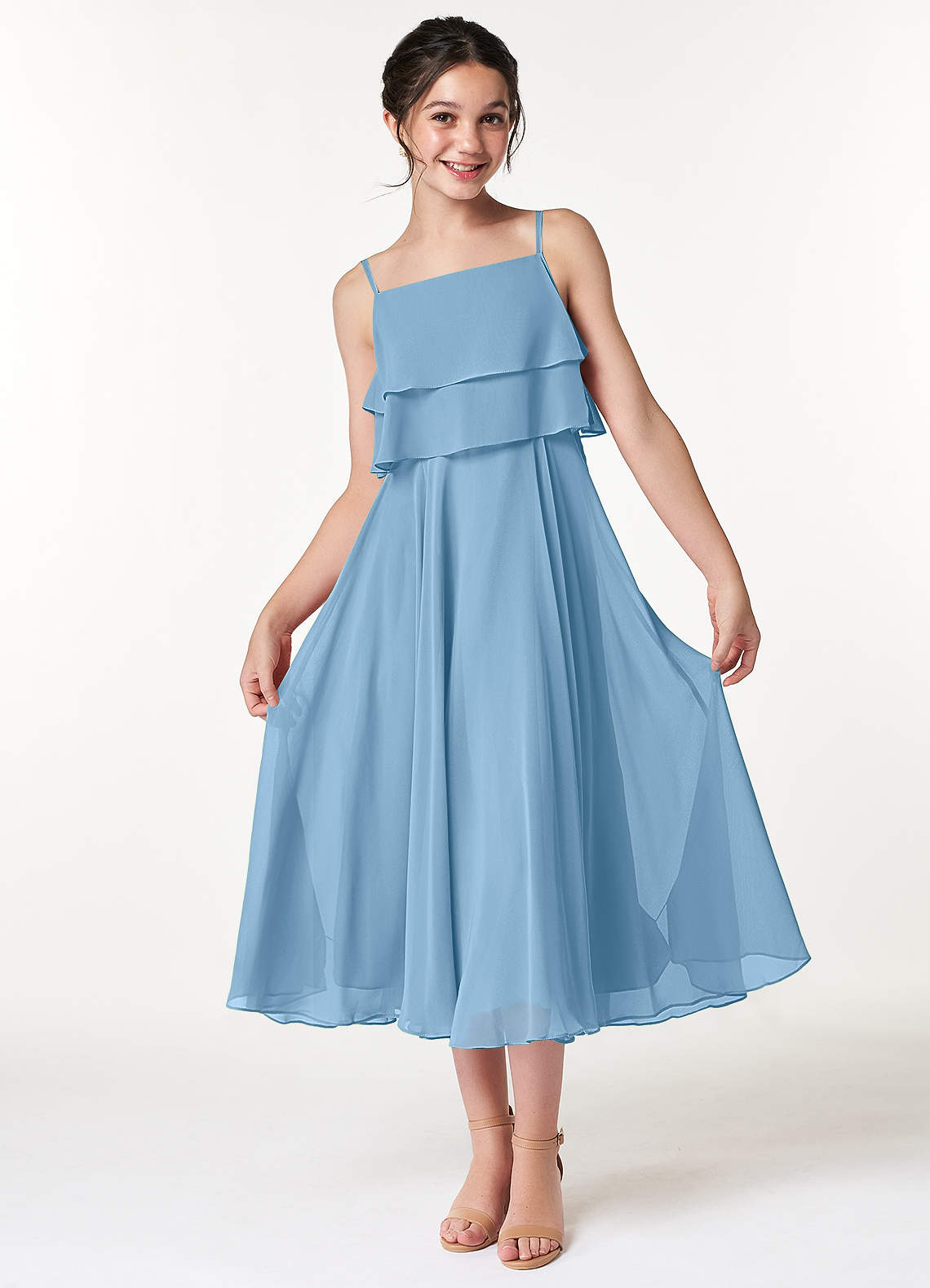Steel Blue A-Line Pleated Chiffon Dress