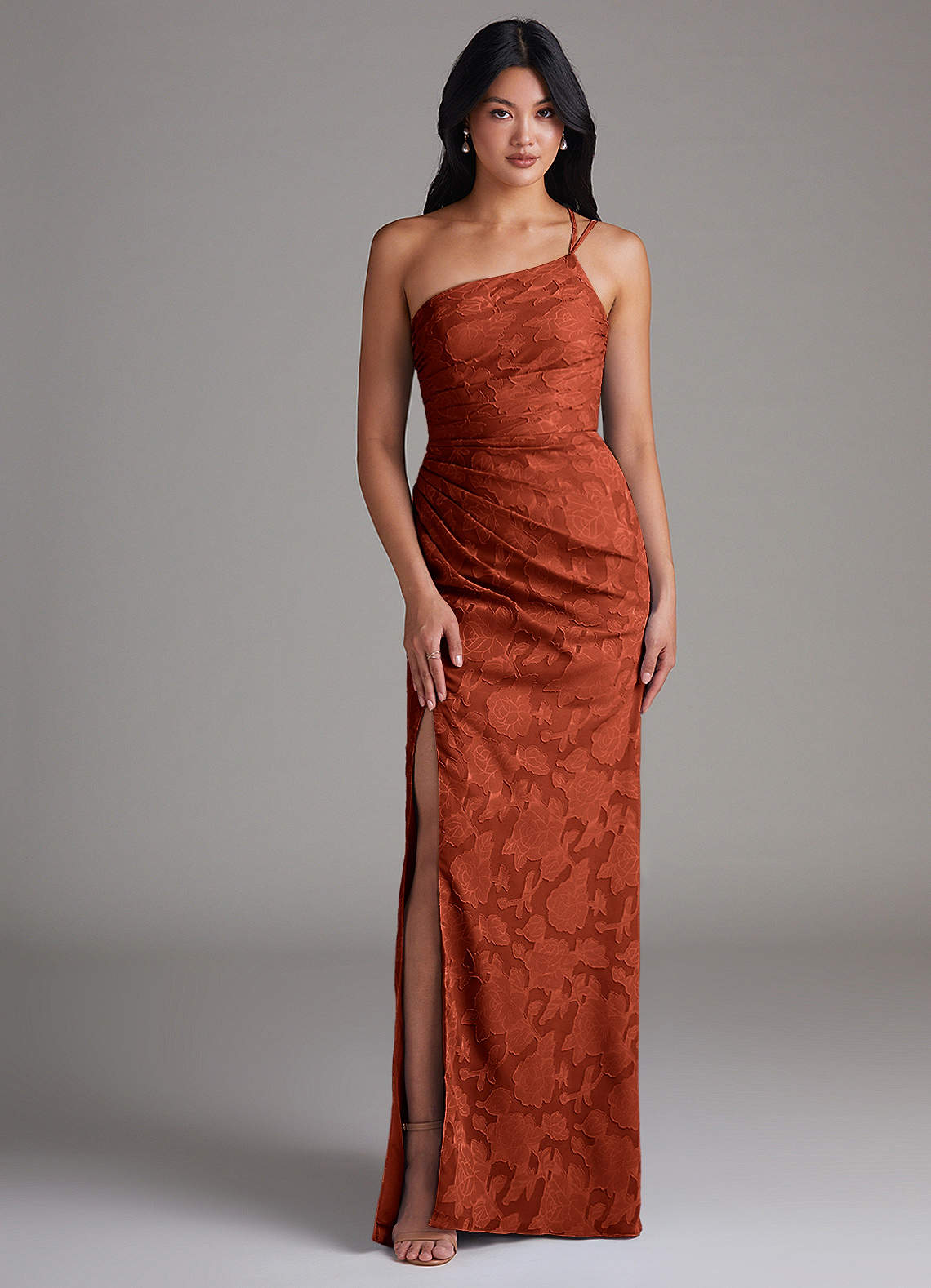 Auburn Sheath One Shoulder Floral Burnout Dress