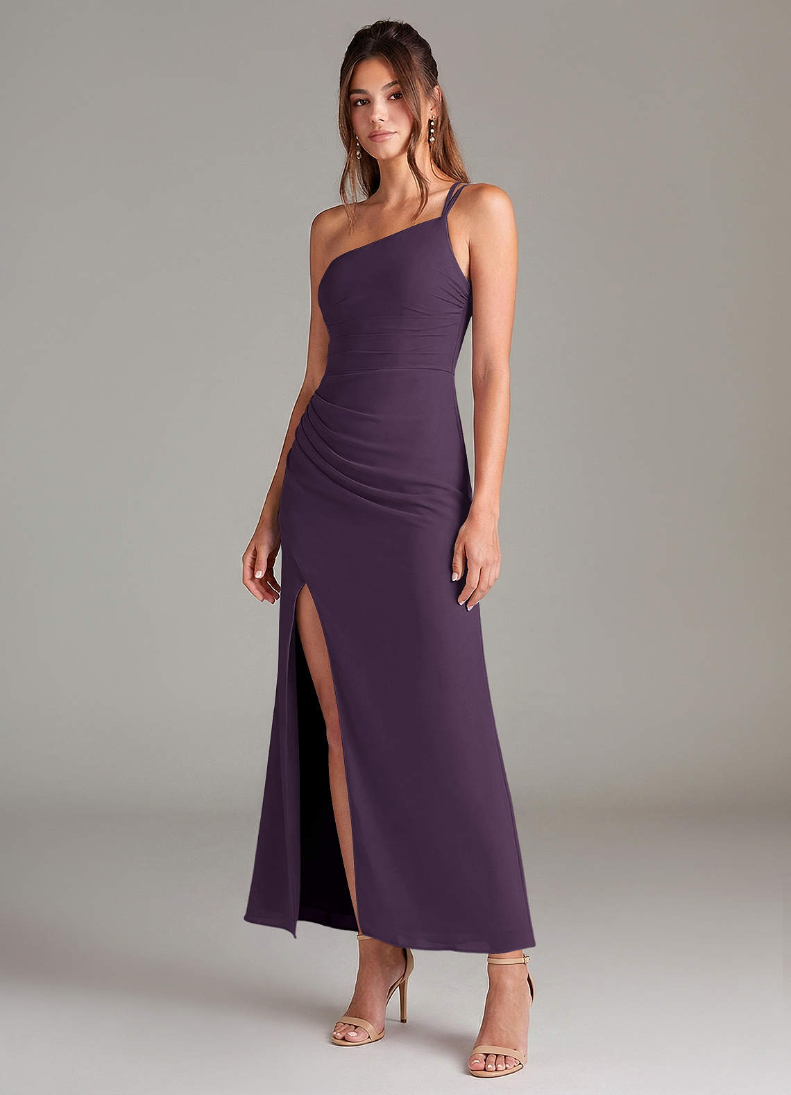 Plum Mermaid One Shoulder Chiffon Dress