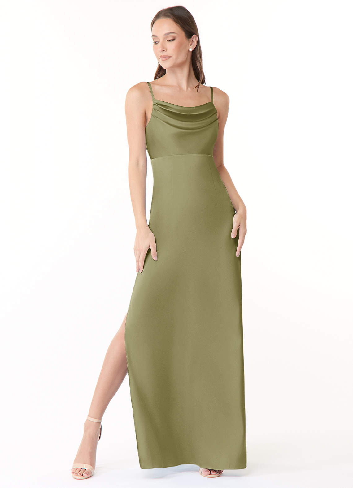 Terracotta A-Line Pleated Stretch Satin Dress