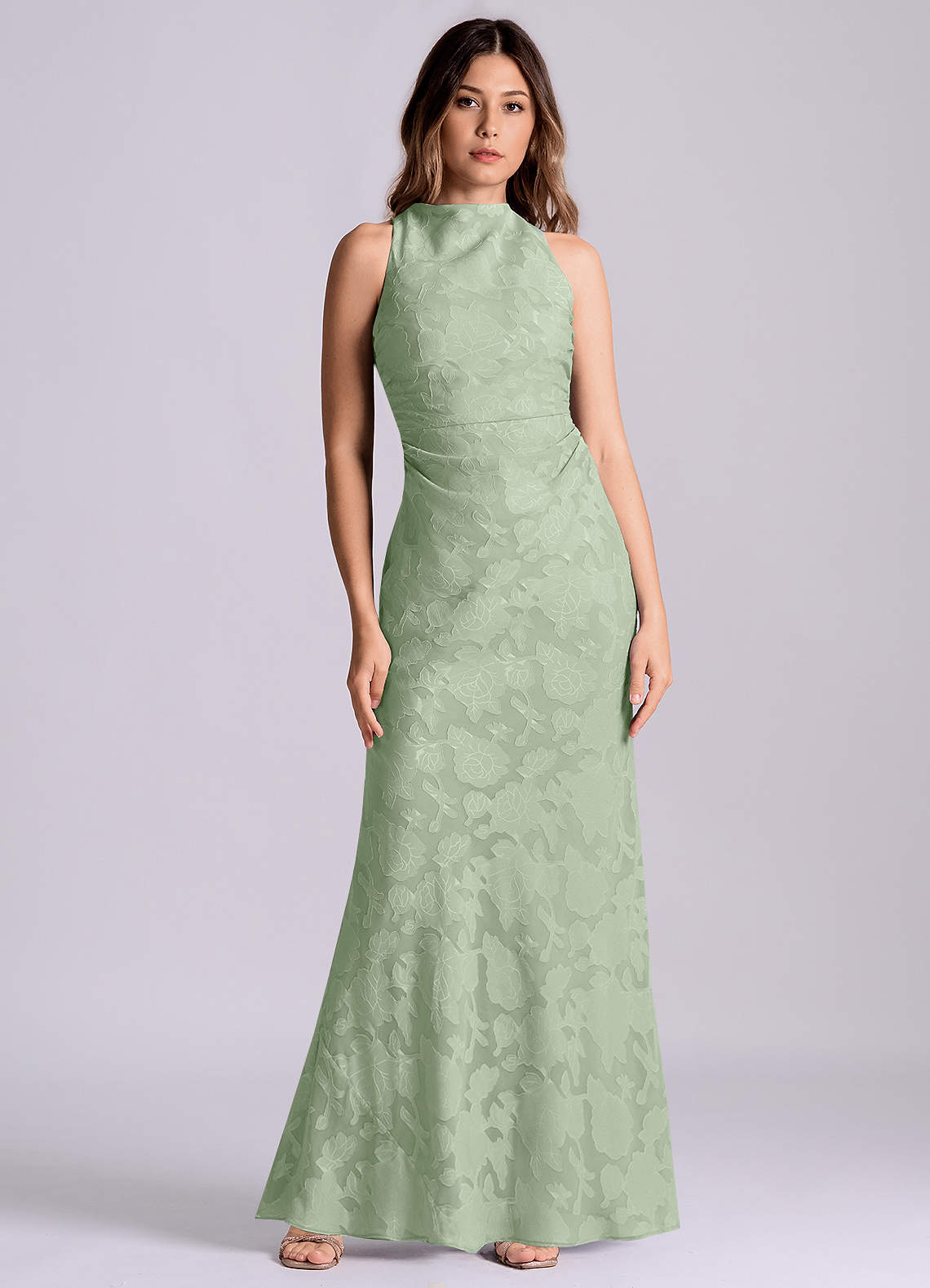 Dusty Sage Sheath Pleated Floral Burnout Dress