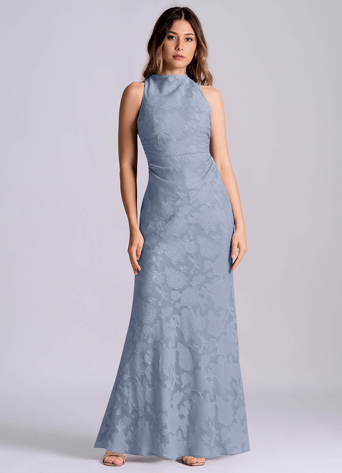 Dusty Blue Sheath Pleated Floral Burnout Dress