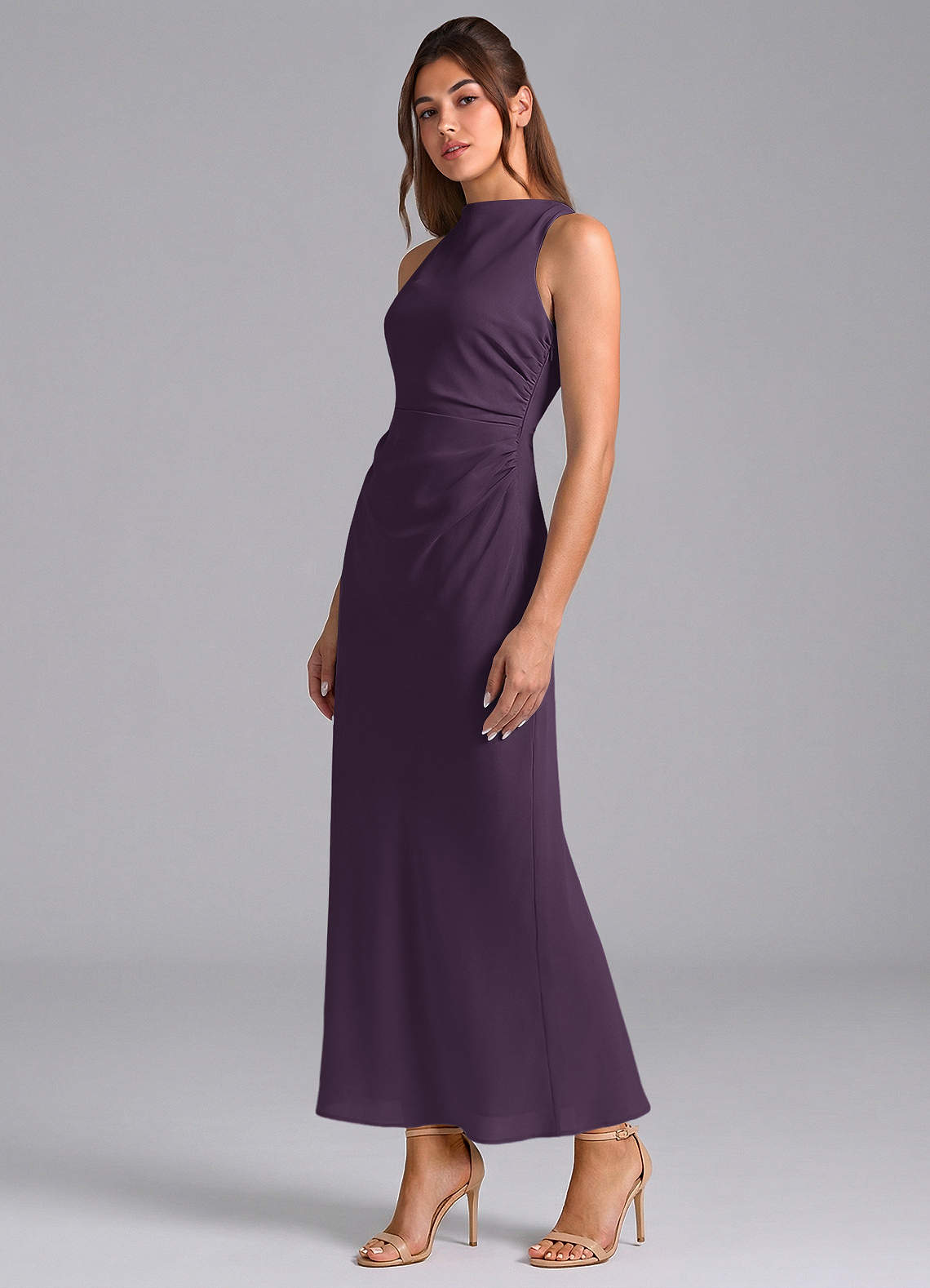 Plum Sheath Pleated Chiffon Dress