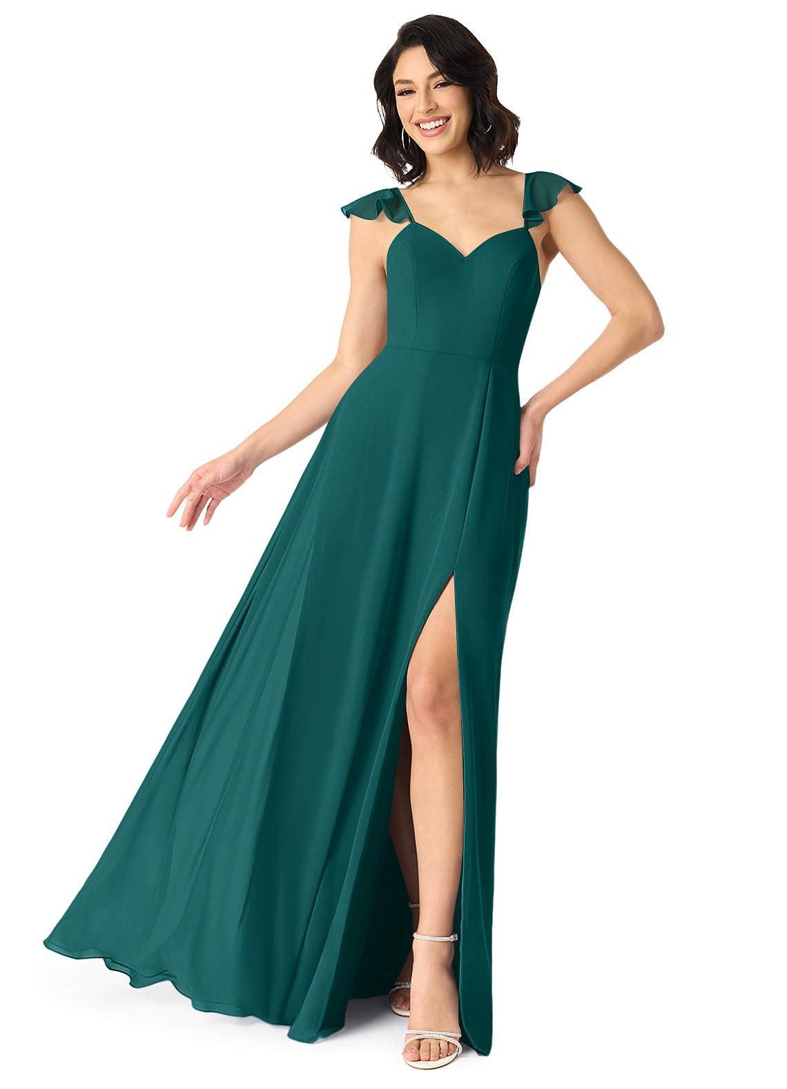 Azazie Everett Bridesmaid Dresses Peacock A-Line V-neck Ruched Chiffon Dress image1