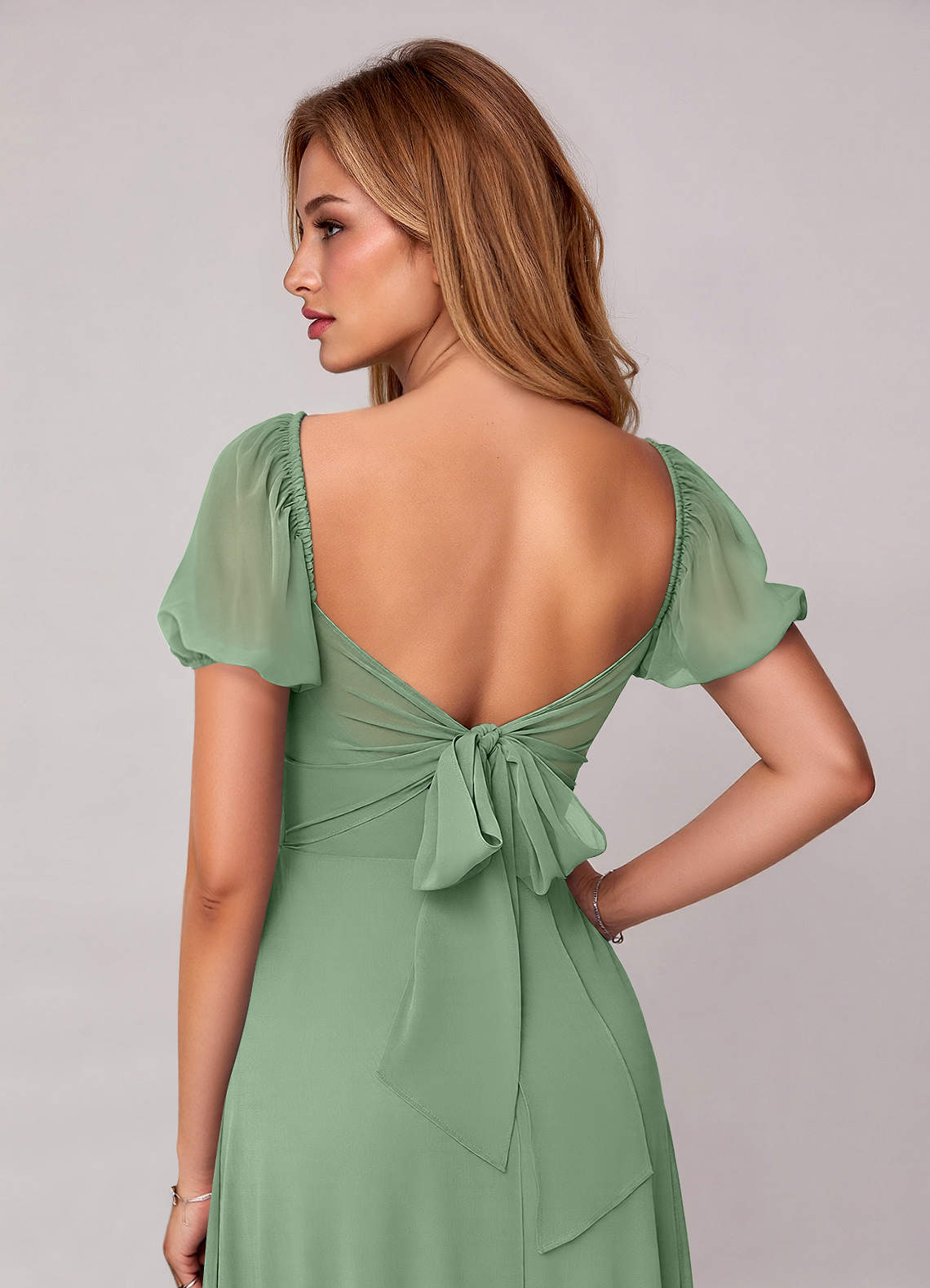Matcha A-Line with Pockets Chiffon Dress