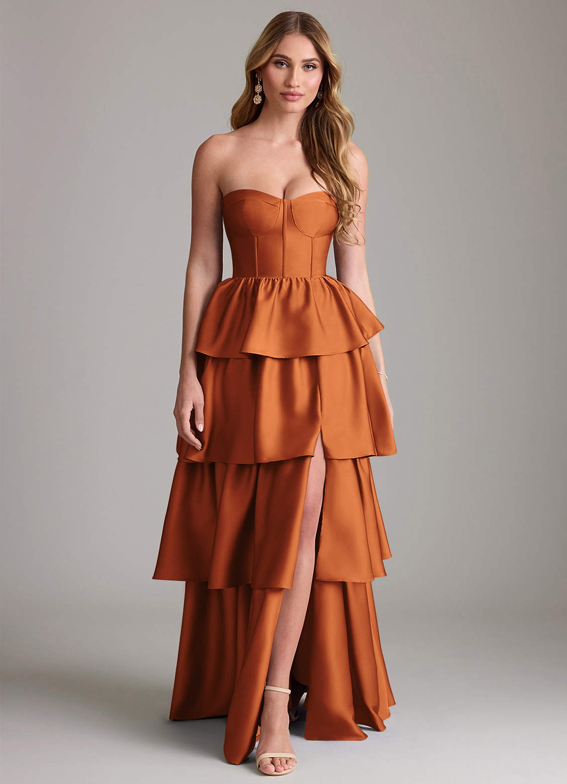 Cinnamon A-Line Ruched Stretch Satin Dress