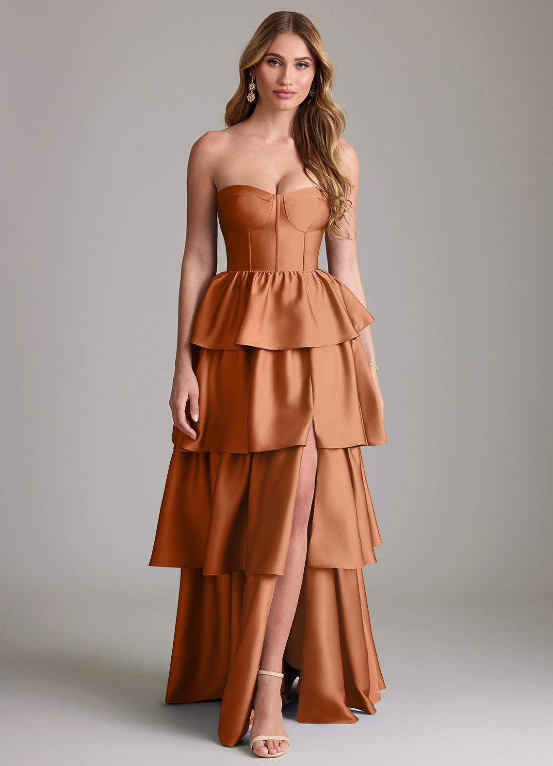 Copper A-Line Ruched Stretch Satin Dress