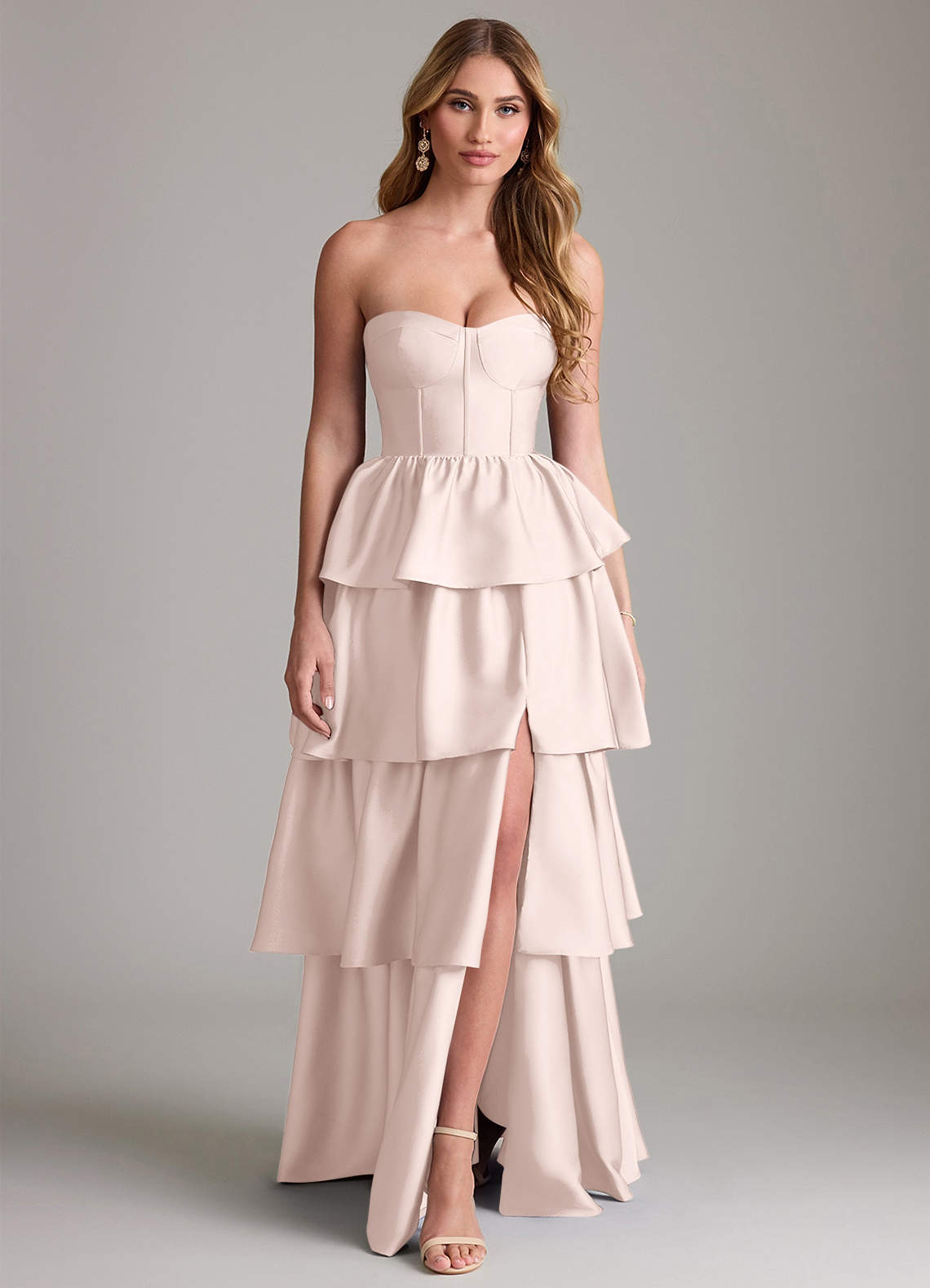 Blushing Pink A-Line Ruched Stretch Satin Dress