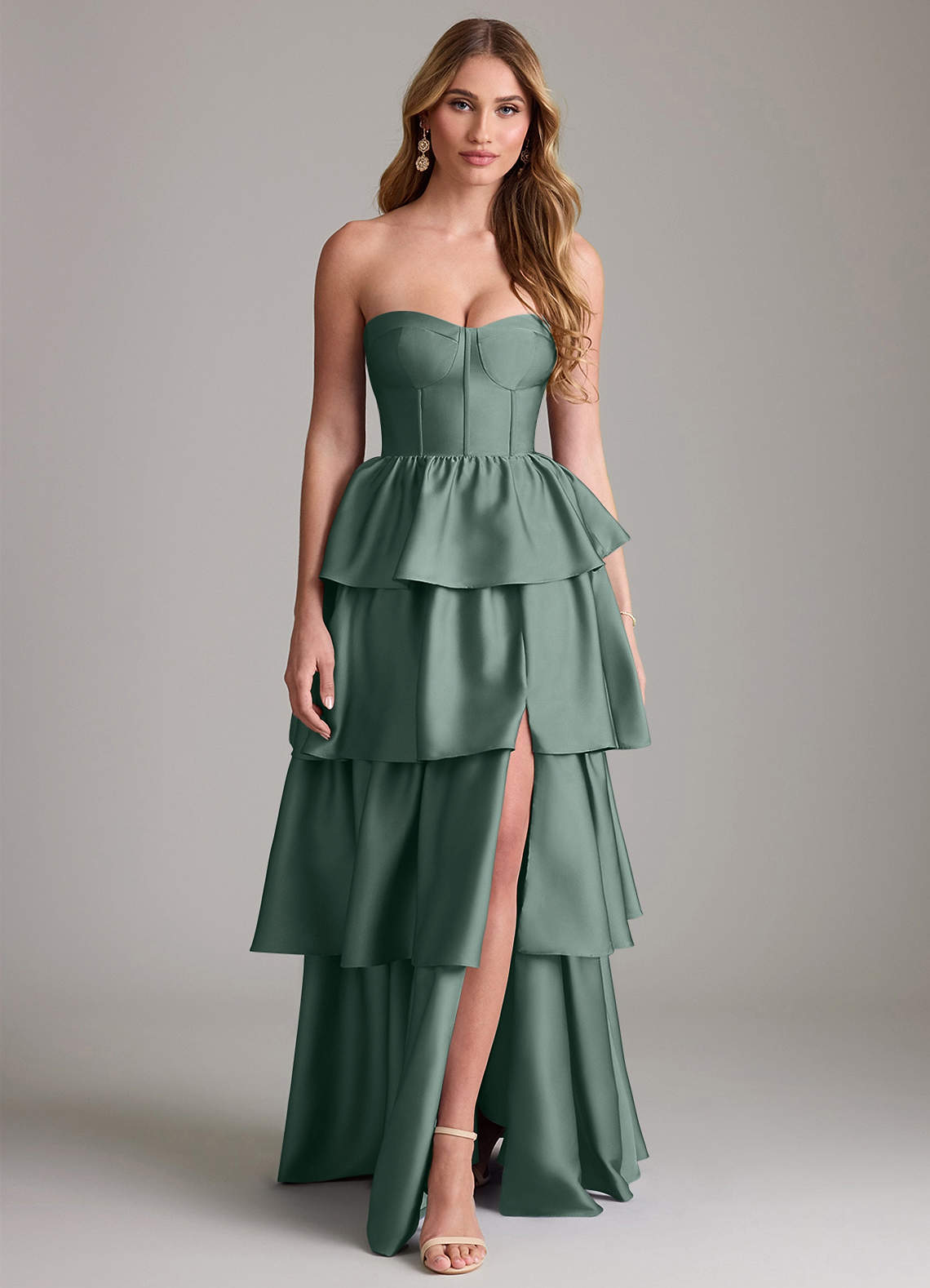 Sea Moss A-Line Ruched Stretch Satin Dress