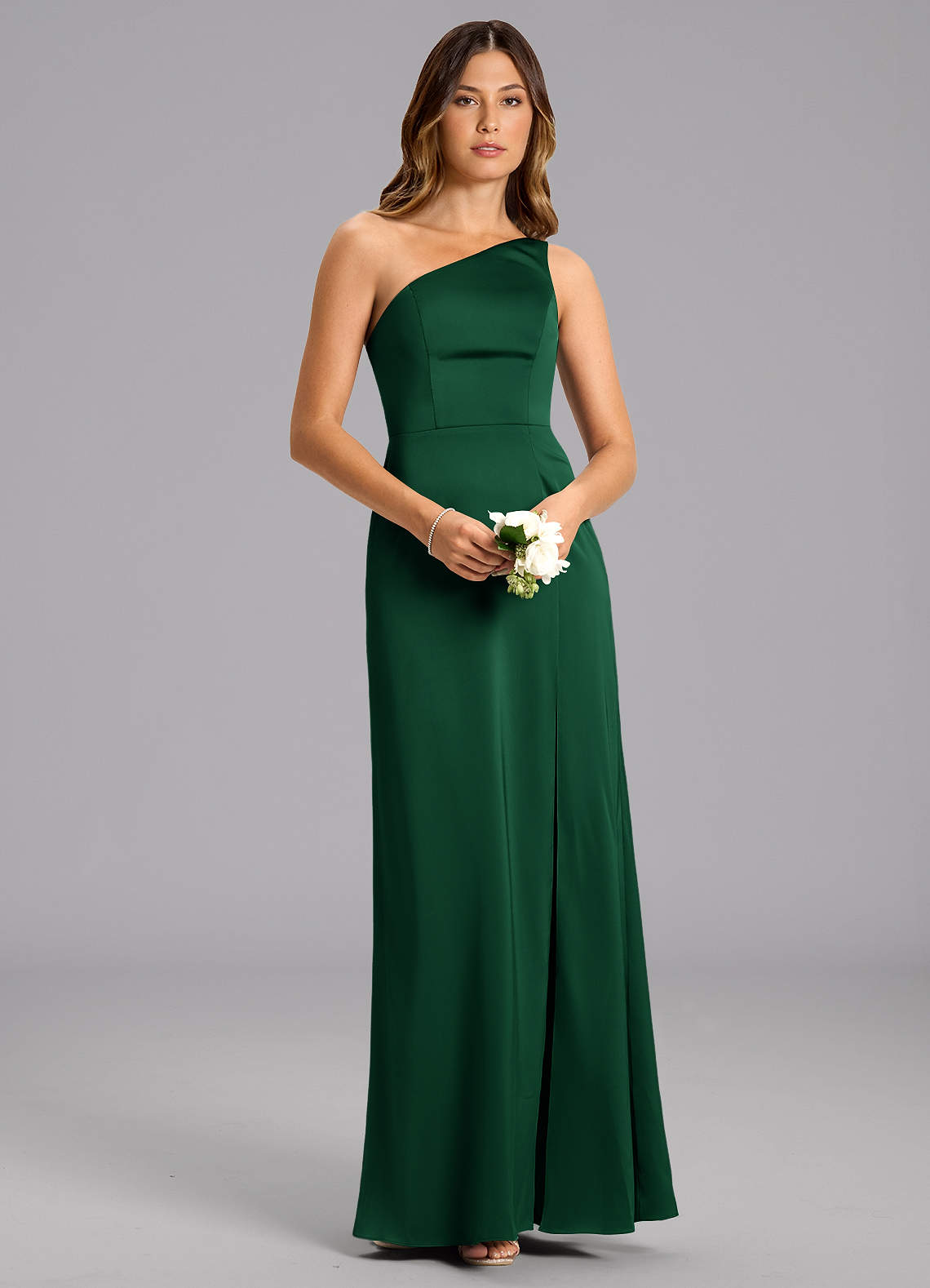 Dark Green A-Line One Shoulder Stretch Satin Dress